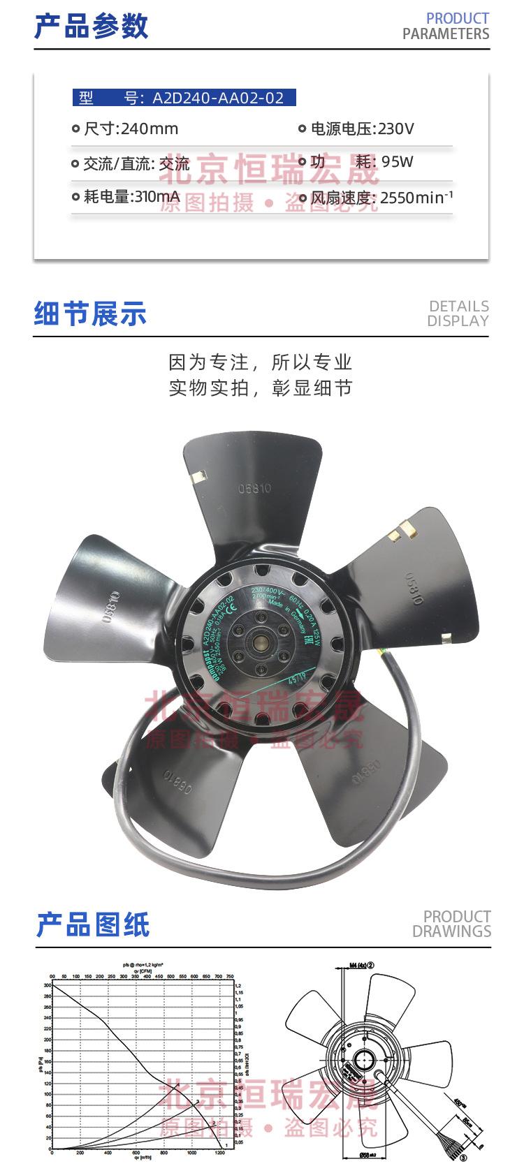 Além do ventilador ebmpapst A2D240-AA02-02, a Beijing Hengrui Hongsheng Electromechanical Equipment Co., Ltd. também fornece outros ventiladores, alguns dos quais são os seguintes: