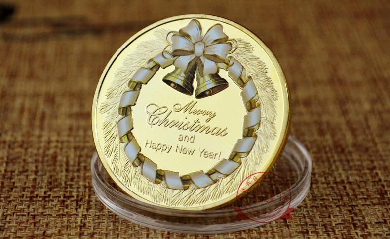 Compre Série de Natal medalhão comemorativo americano relevo impressão colorida medalhão comemorativo banhado a ouro pintura em spray colorido artesanato no atacado no Joom.pro