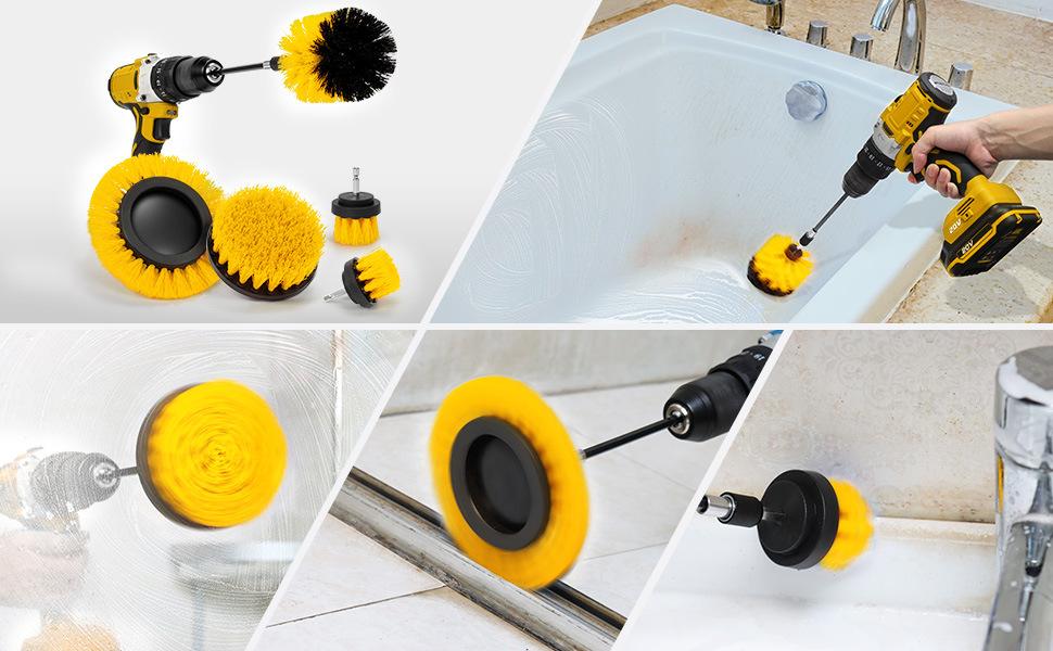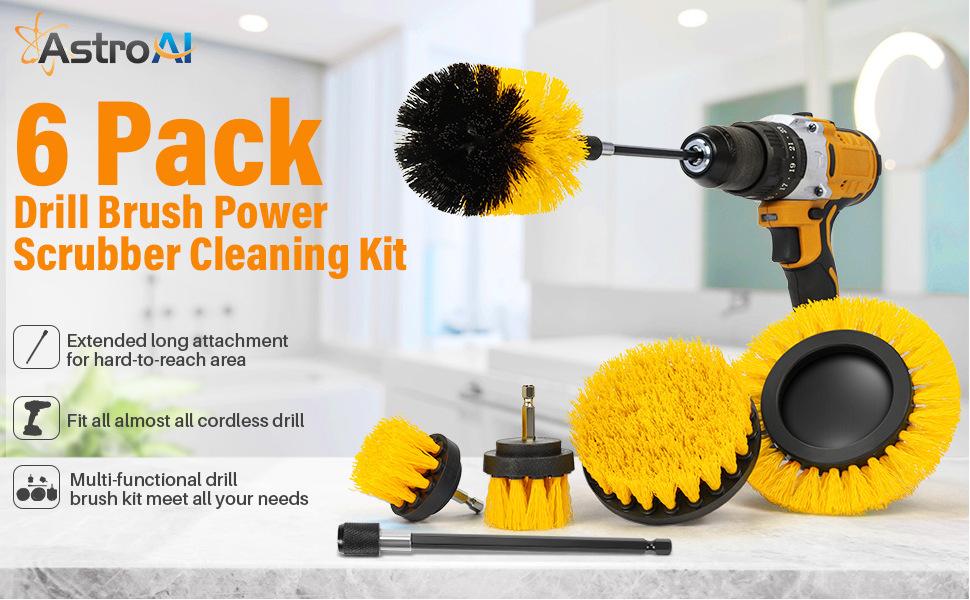 Este conjunto de 6 peças não inclui uma furadeira elétrica. O preço inclui: 2 cabeças de escova de 2 polegadas, 1 cabeça de escova estendida de 3,5 polegadas, 1 cabeça de escova de 4 polegadas, 1 escova para fendas e uma haste de extensão de 15 cm.