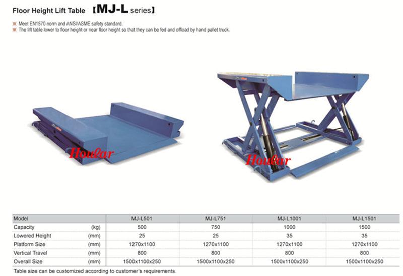 MJ-A1001 elevador elétrico 1 tonelada elevação 0,99 metros plataforma elevatória hidráulica elevação fixa