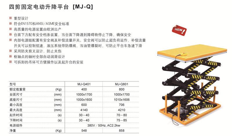 MJ-A1001 elevador elétrico 1 tonelada elevação 0,99 metros plataforma elevatória hidráulica elevação fixa