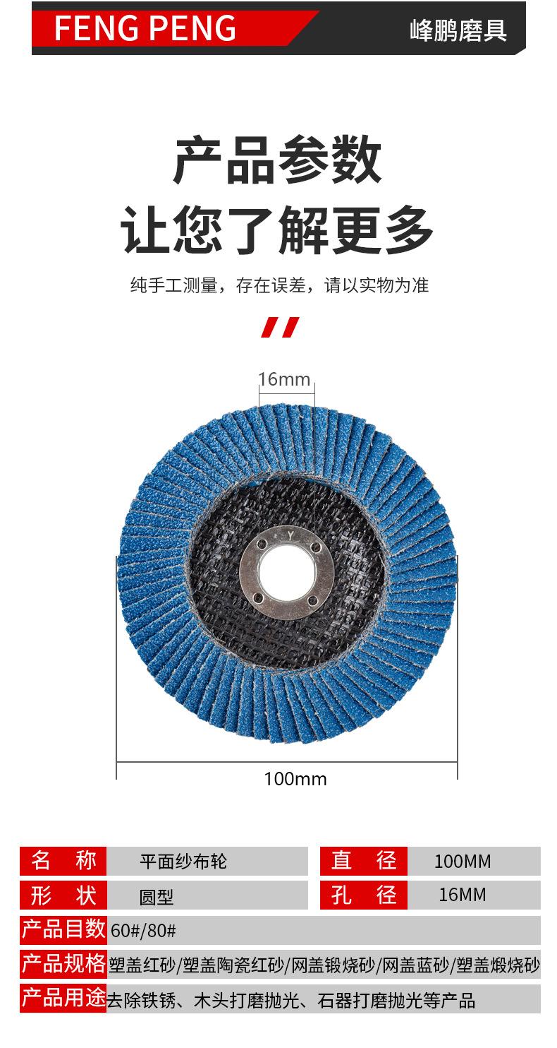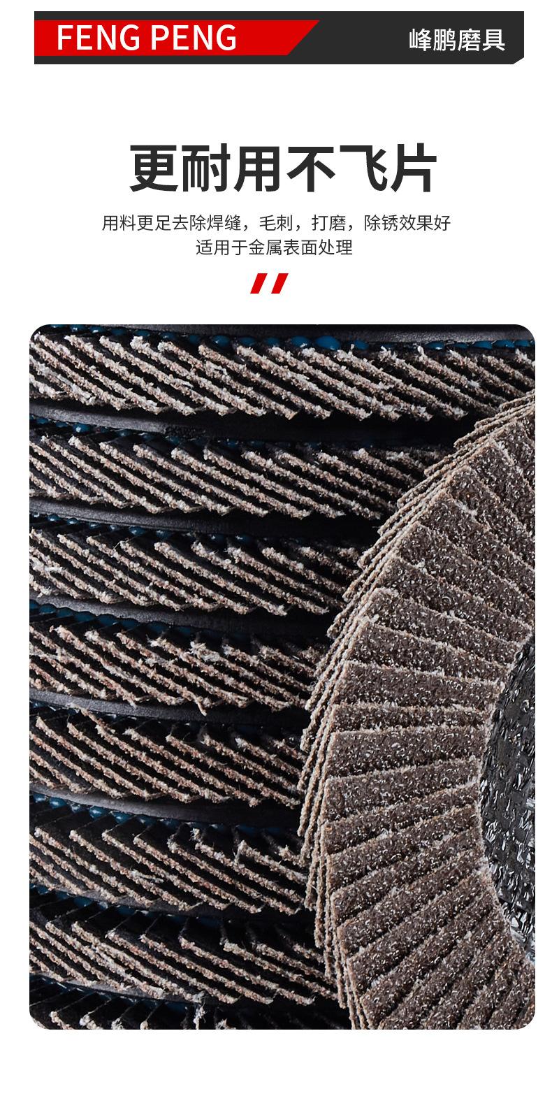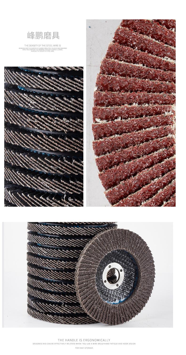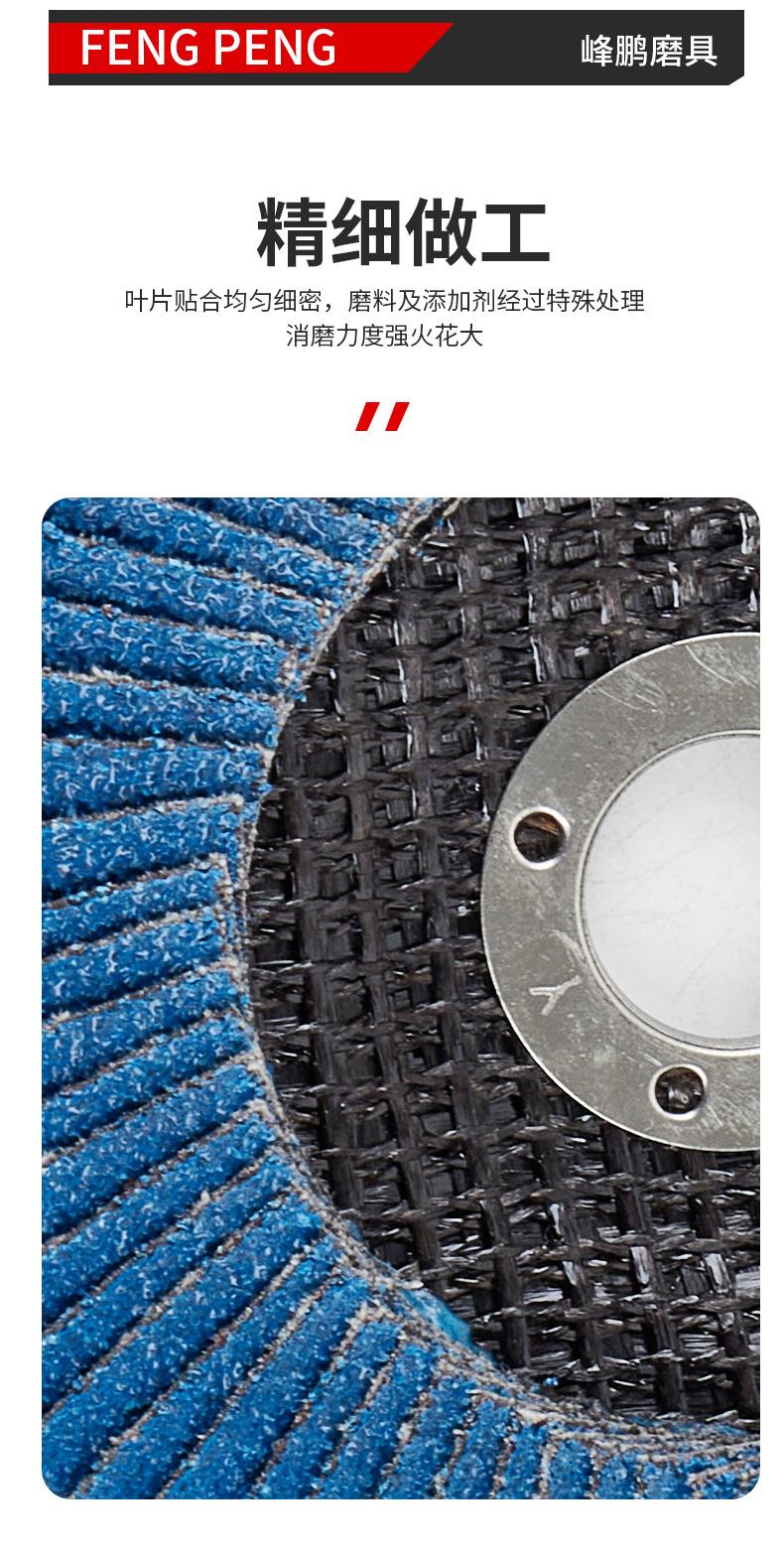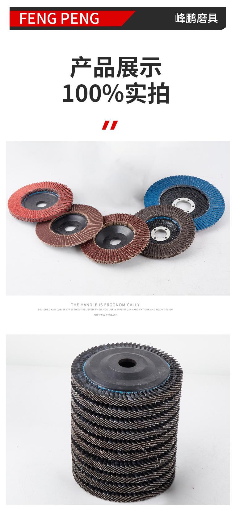 Ámbito de aplicación: Disco abrasivo elástico y resistente para el desbaste de metal, madera y otras industrias. Este producto es un abrasivo recubierto con forma de platillo, hecho de corindón de circonio y otros materiales como base, con papel de lija de alta calidad como material abrasivo y procesado con tecnología especial.