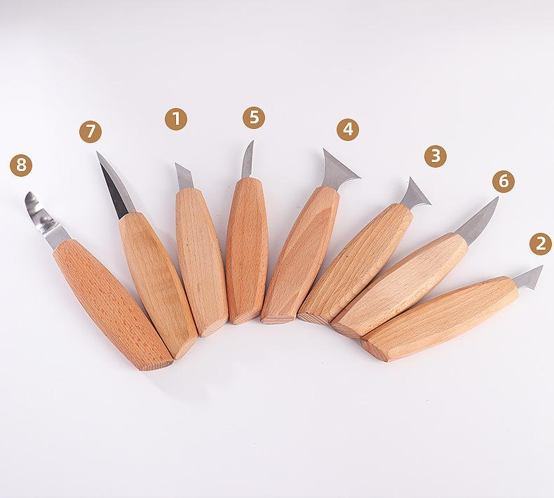 Juego de 8 piezas de cuchillos de tallado biselados de nogal unisex bolsa de lona cabello