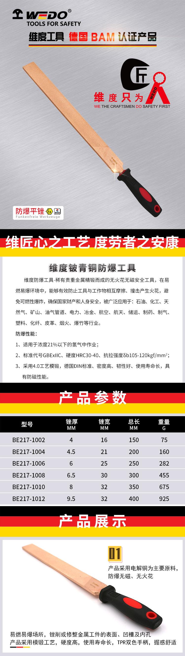 As ferramentas à prova de explosão da nossa empresa são300-2500TÉ forjado de uma só vez usando uma grande prensa de fricção com tecnologia de produção avançada.. As ferramentas à prova de explosão são divididas em bronze de alumínio e bronze de berílio. Ferramentas de bronze de berílioⅡCproduto, em concentração21%Trabalhar com hidrogênio não detonará o gás; ferramentas de bronze de alumínio sãoⅡBproduto, em concentração7,8%Trabalhar com gás etileno não detonará o gás. Como o material de bronze-berílio tem magnetismo zero, as ferramentas de bronze-berílio também são chamadas de ferramentas antimagnéticas e podem operar com segurança em ambientes de campo magnético.