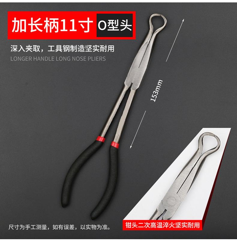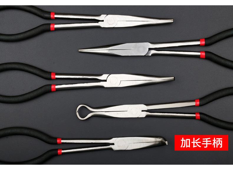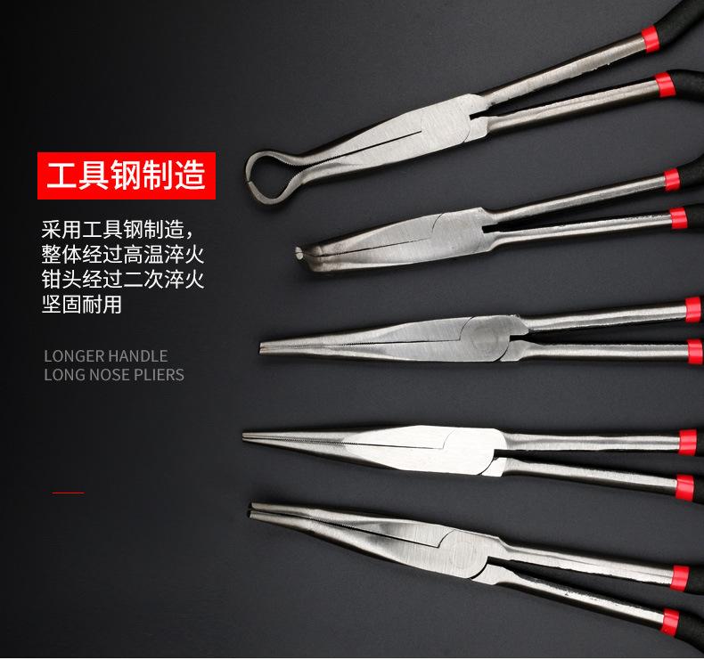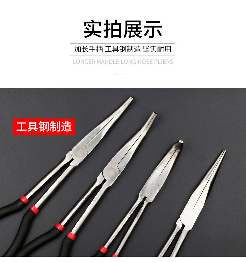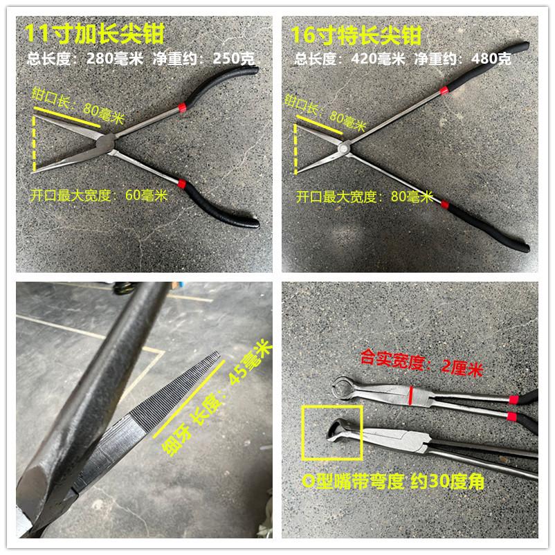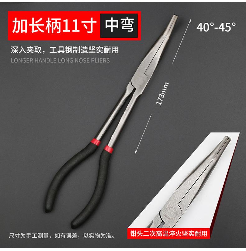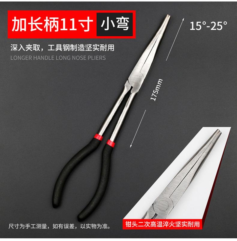 Alicate de bico pontudo de 11 polegadas Comprimento total 280 milímetros Comprimento da mandíbula 80 milímetros Abertura máxima da mandíbula largura 60 milímetros Cada peso líquido aproximadamente 250 gramas