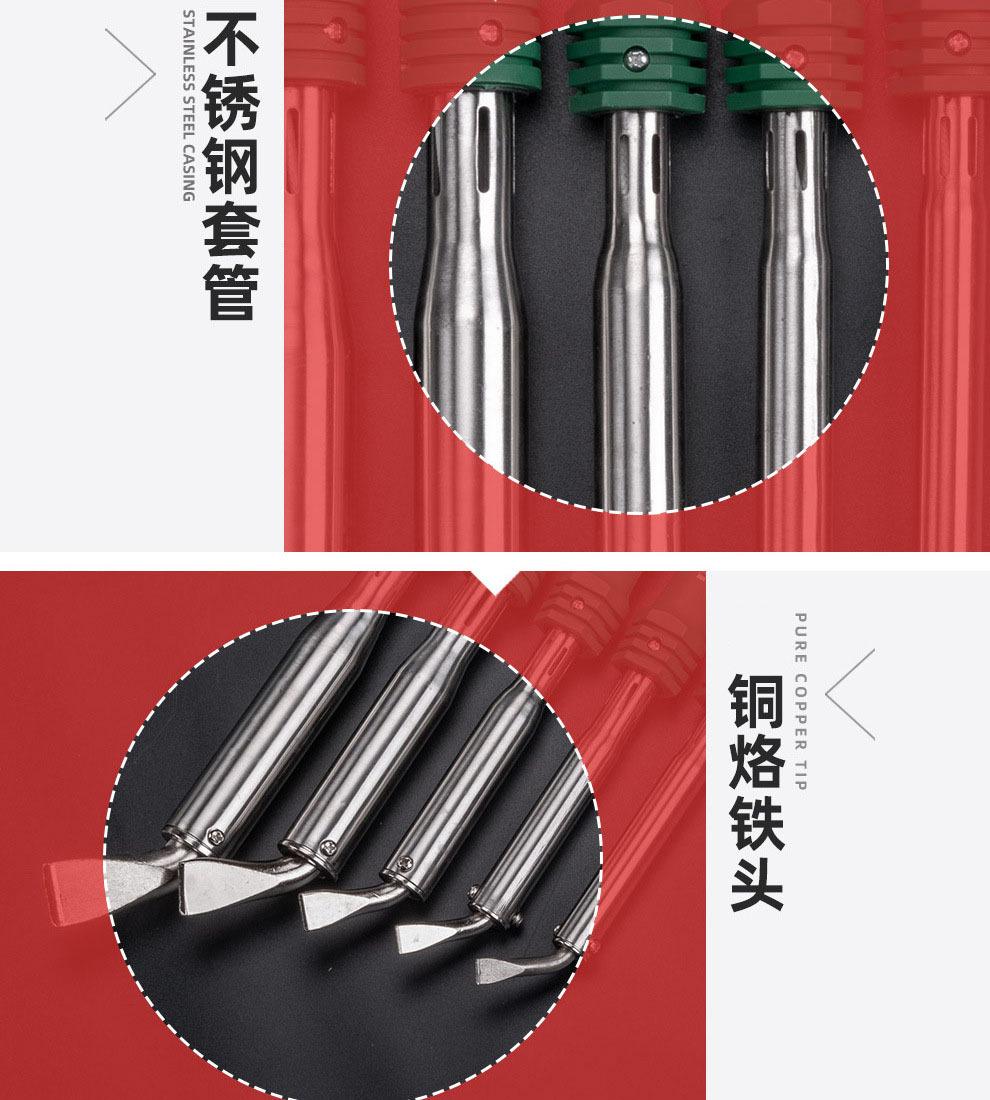 | Paquete A = cautín eléctrico + núcleo calefactor + punta de soldador + esponja de limpieza x2 |