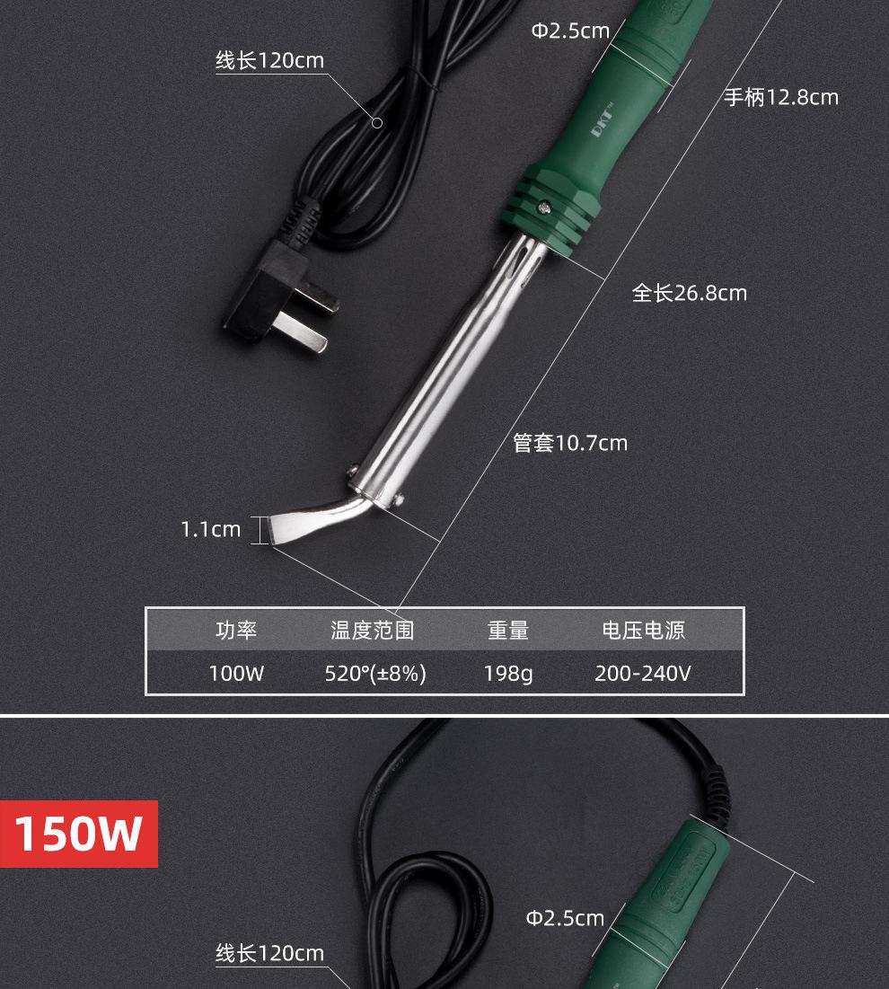 | Cautín de alta potencia | 100 | 1 | 17 | 25.5 | 30 | 110 | 130 | 270 |
