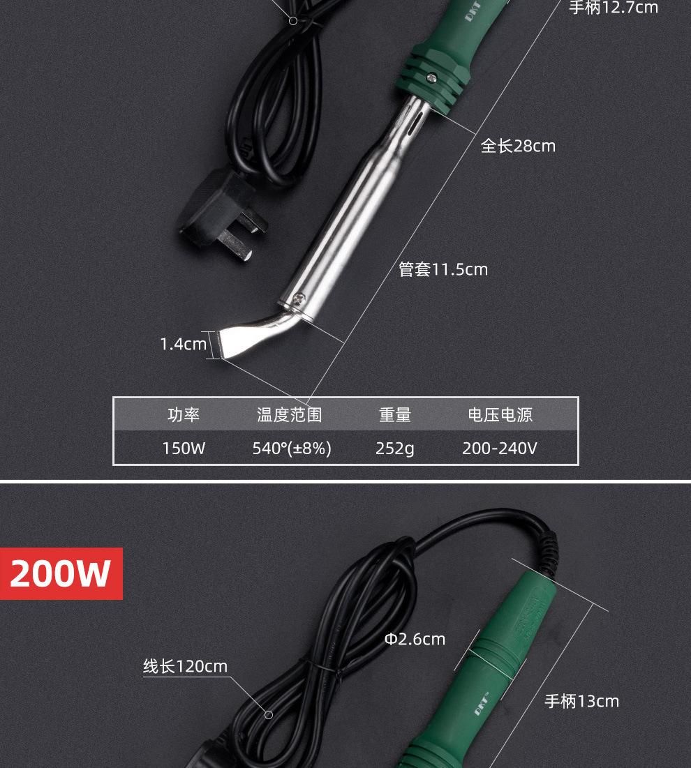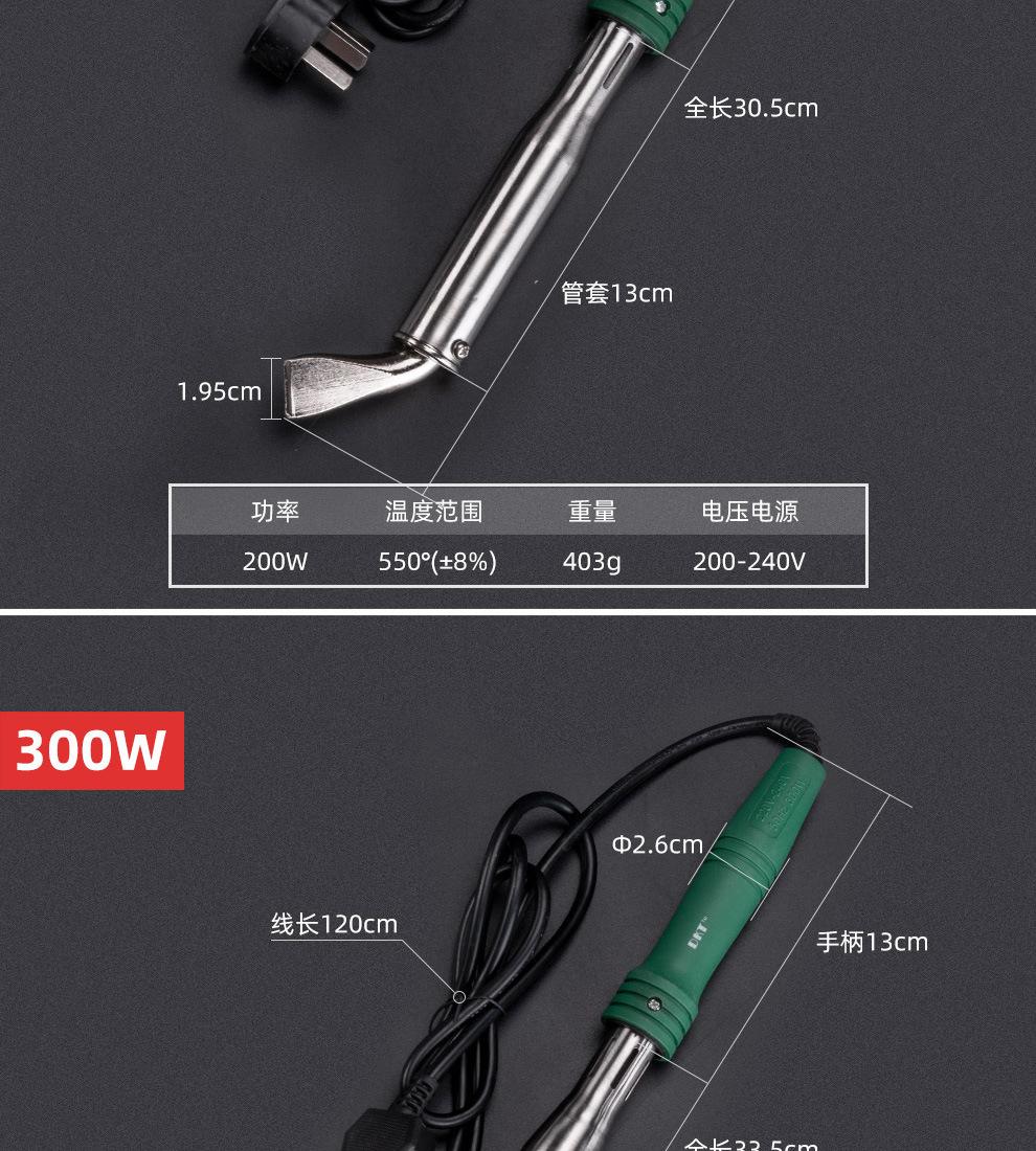 | Cautín de alta potencia | 300 | 1.3 | 28.5 | 27 | 55 | 150 | 135 | 340 |