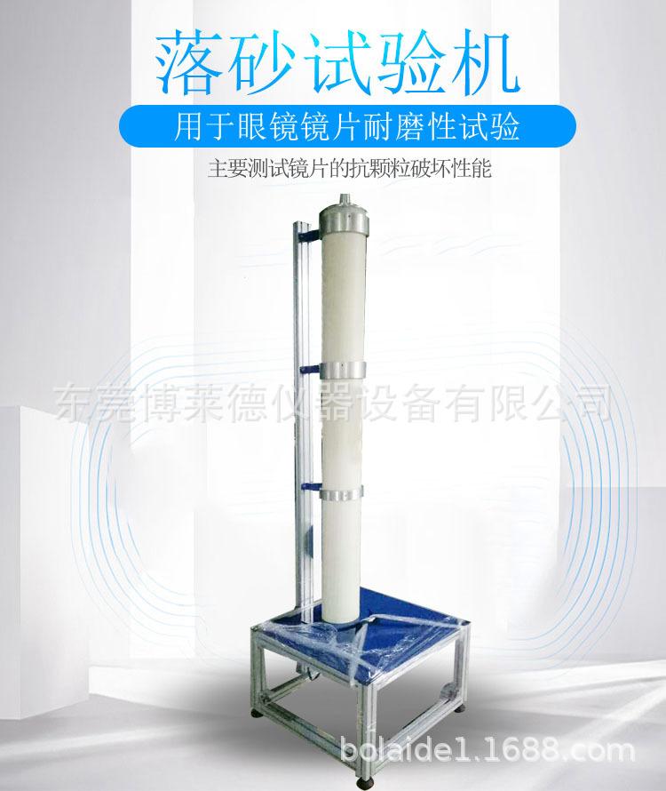Norma de referencia: EN166 y EN168 Propósitos de la prueba: la prueba principal de resistencia al daño de partículas de las lentes requiere que la lente gire a una cierta velocidad (250 + 10 r/min), con una cierta cantidad de fricción de arena de cuarzo (3 kg) y luego observe si la lente está dañada.Método de prueba: 1. Fije la lente a la ventosa en el instrumento;2. Encienda el instrumento y gire la ventosa para hacer que la lente gire a una velocidad de 250 más o menos 10 r/min, y la arena de cuarzo de 3 kg se vierte desde el embudo superior del instrumento para drenarlo lentamente.3. Apague el dispositivo, retire la lente y observe si está dañada.Parámetros clave: 1. Longitud de la tubería: 1650 W. Diámetro del recipiente: 120 ± 3 mm. 3. Ángulo del asiento de la muestra: 45 ± 1 °. 4. Velocidad de giro del mandril: 250 ± 10 r/min. 5. Malla: 1,6 mm. 6. Alimentación: 50/60 CA, 100 ~ 240 V Hz. 7. Dimensiones: 46 x 47 x 227 cm (largo x ancho x alto). 8. Peso: 55 kg.