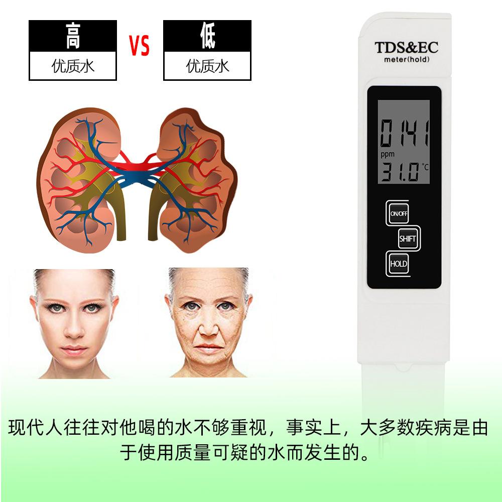 El concepto de TDS es un producto importado, ampliamente utilizado en el campo del tratamiento de agua en Estados Unidos y Taiwán. El valor de TDS se mide generalmente con un medidor de TDS. Su principio de medición consiste en reflejar indirectamente el valor de TDS midiendo la conductividad del agua. En términos físicos, cuanto mayor sea la cantidad de materia disuelta en el agua, mayor será el valor de TDS, mejor será la conductividad y, por lo tanto, mayor será su valor de conductividad.