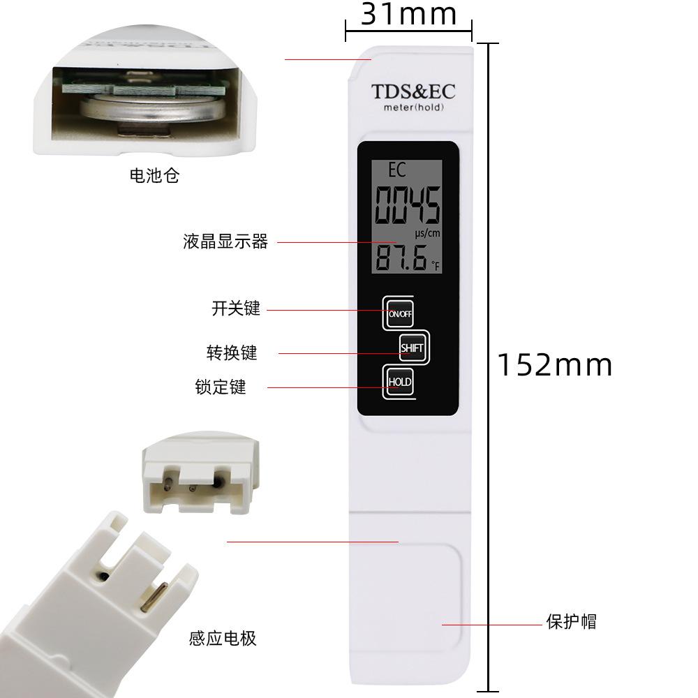 Precauciones de uso: Evite sumergir el bolígrafo TDS en agua, exponerlo a la luz solar directa y a altas temperaturas, así como a impactos, presiones fuertes y caídas. Diferencia entre la conductividad y el bolígrafo TDS.
