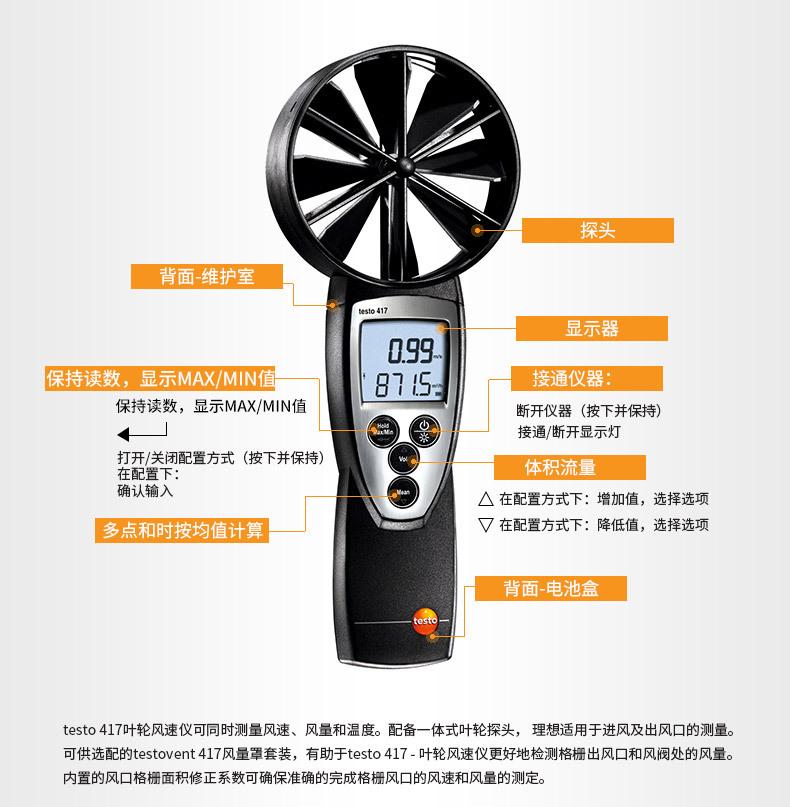 Anemômetro de rotor grande TESTO417 Anemômetro de rotor TESTO-417 Anemômetro multifuncional alemão Testo