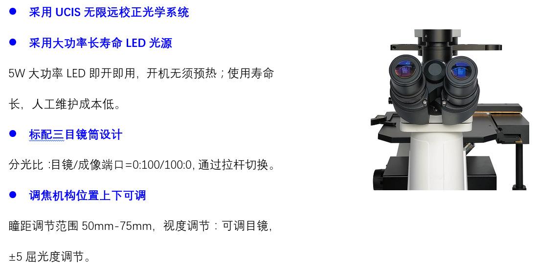 ◆Tubo trinocular estándar, relación de división: ocular/puerto de cámara = 80/20, 0/100 es opcional;