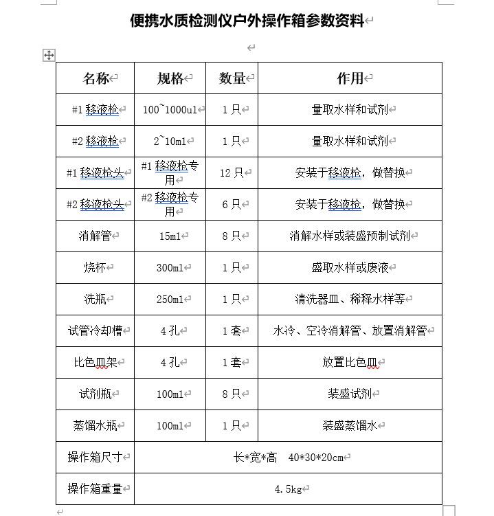 A caixa experimental que vem com o testador portátil de qualidade da água é conveniente para os usuários usarem em campo e laboratório. Ela é totalmente equipada com tubos de ensaio, béqueres e pipetas, então os usuários não precisam correr atrás de acessórios.