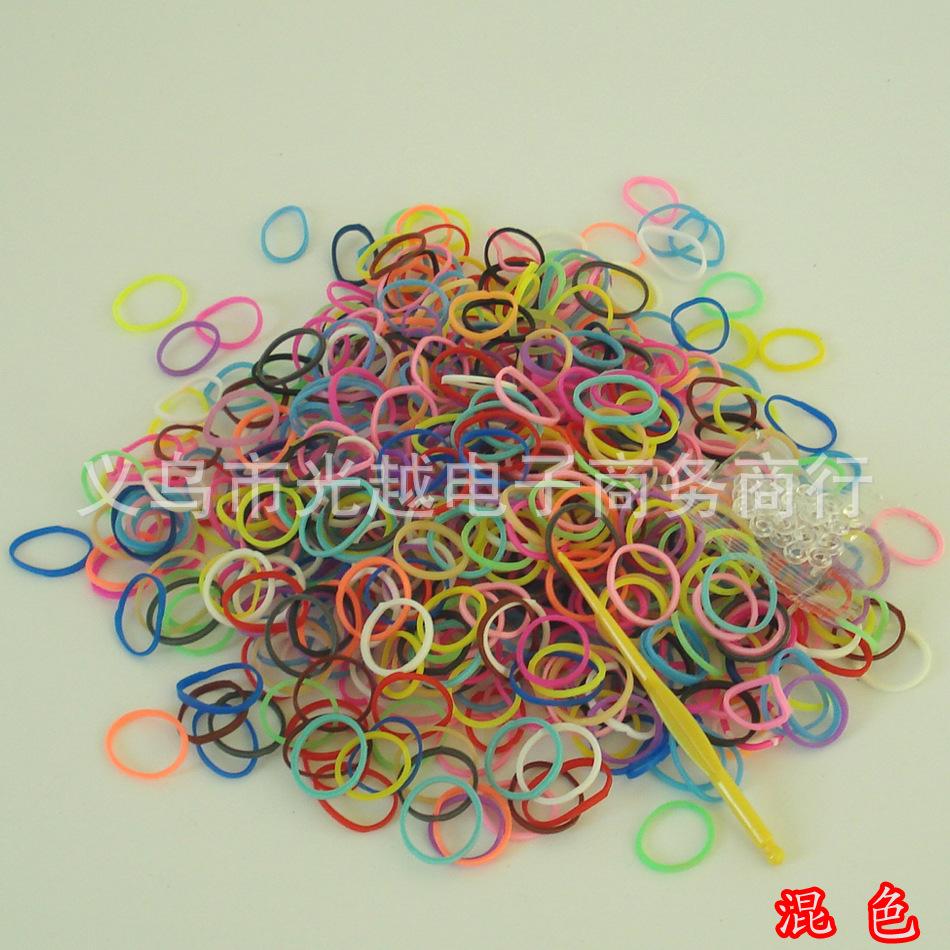 :600 ligas de goma de color sólido + 24 hebillas C o hebillas S + 1 ganchillo pequeño