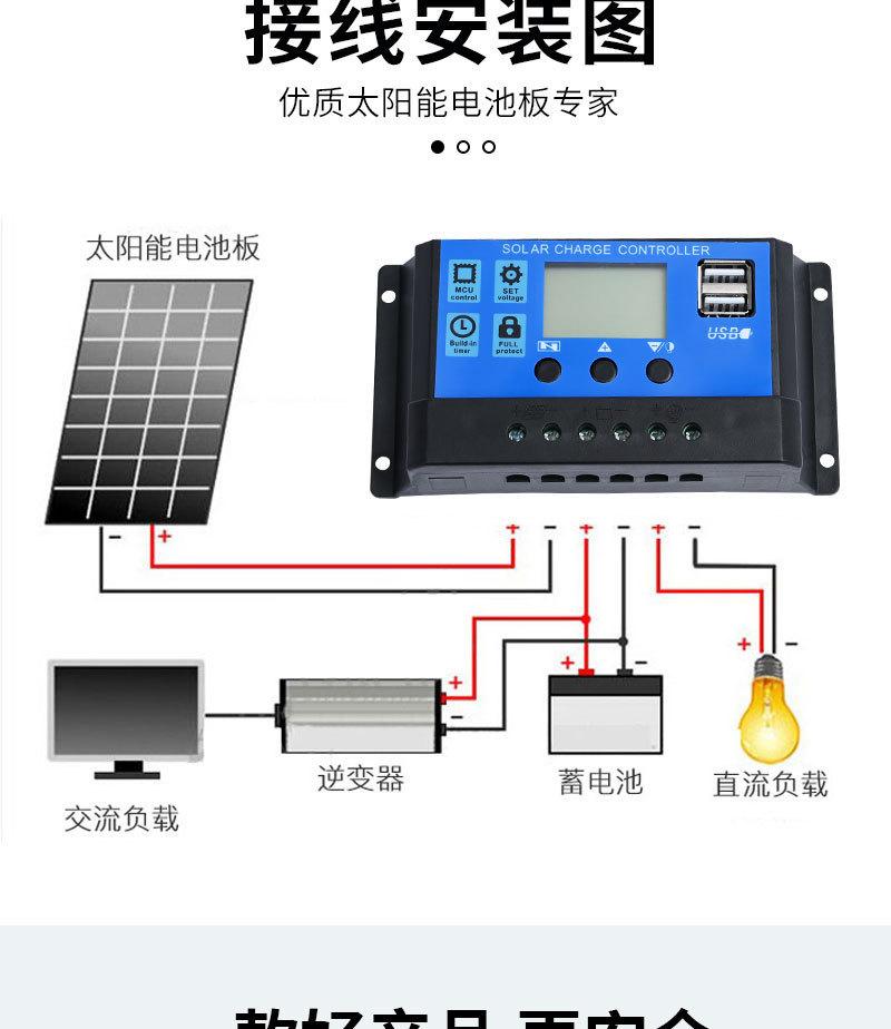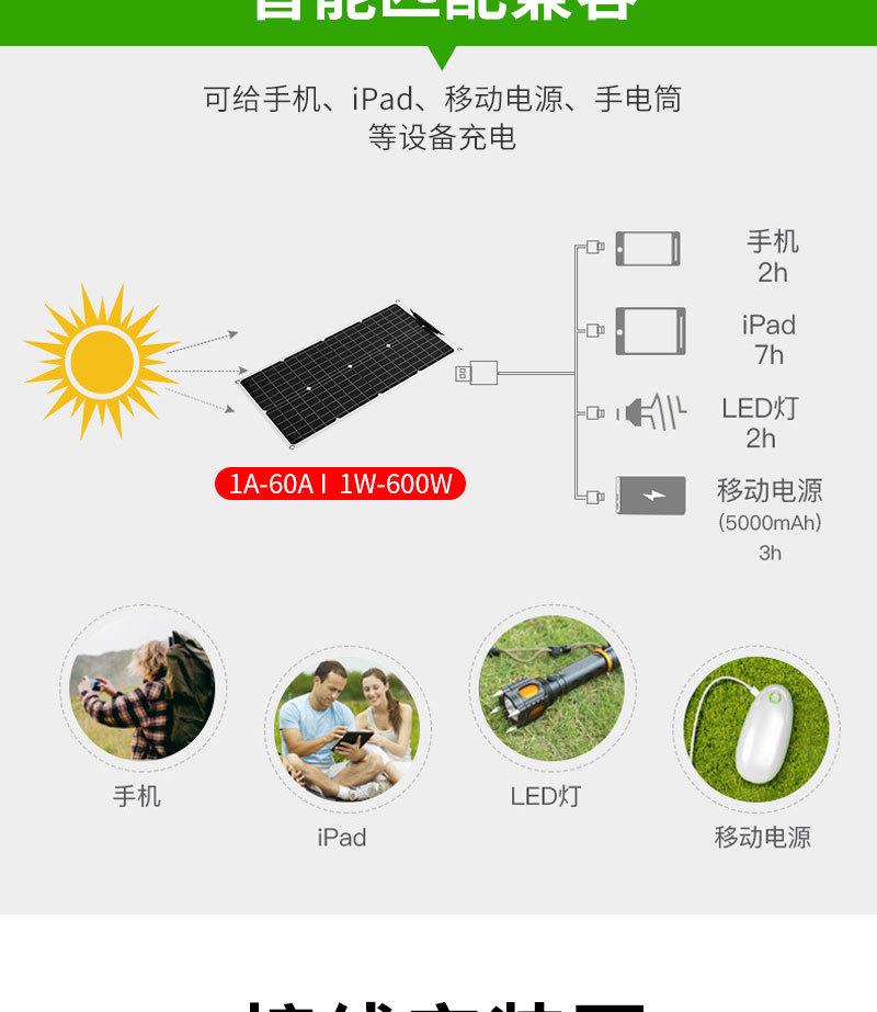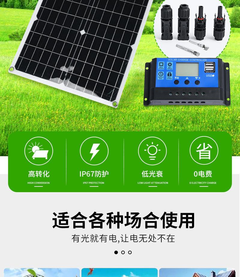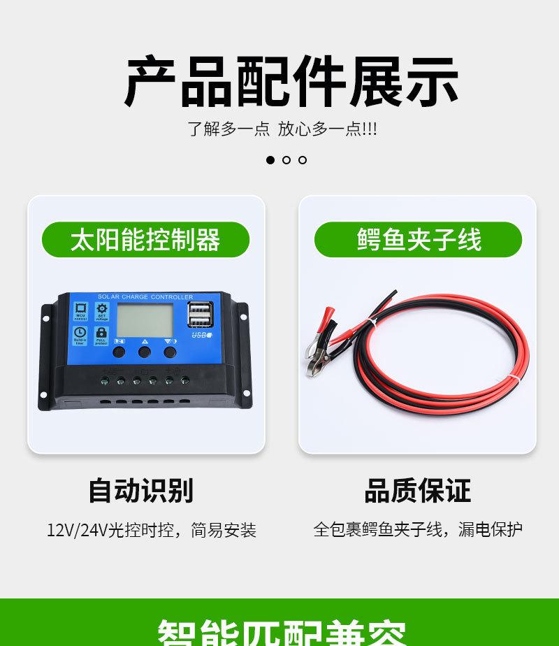 Lista de embalagem: 1 * painel solar 2 * interface MC4 Opcional: 1 * controlador 1 * cabo de extensão de clipe de bateria 1 * cabo de extensão mc4 1 * interface de três vias 4 * fivela de escalada