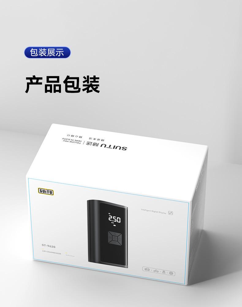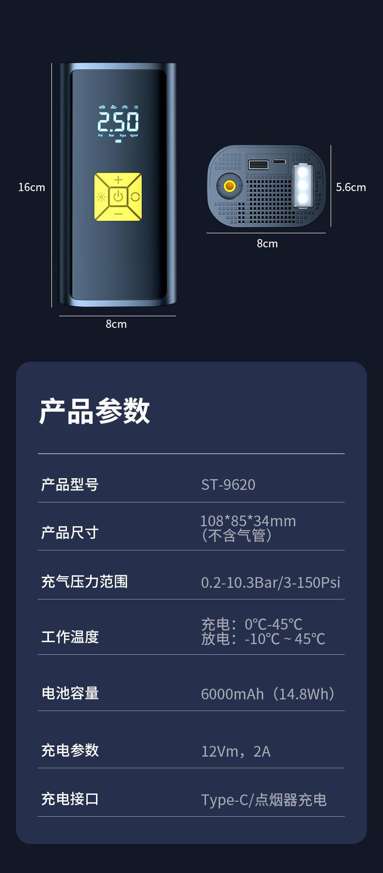 【ST-9620BHost inalámbrico*1, manguera de inflado*1, boquilla de inflado4colocar,Cable de carga tipo C, cable 3M US 12 V, manual de instrucciones (1), caja de color (1)
