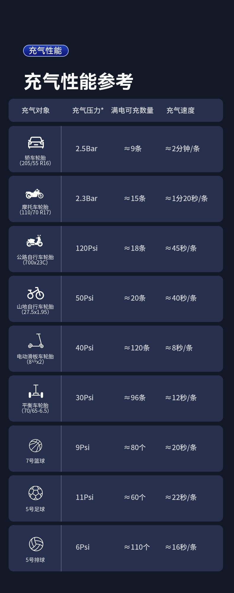 【Tiempo】: Batería de litio completamente cargada, tiempo de trabajo: aprox.Una carga completa de 20 minutos puede inflar 2 neumáticos.