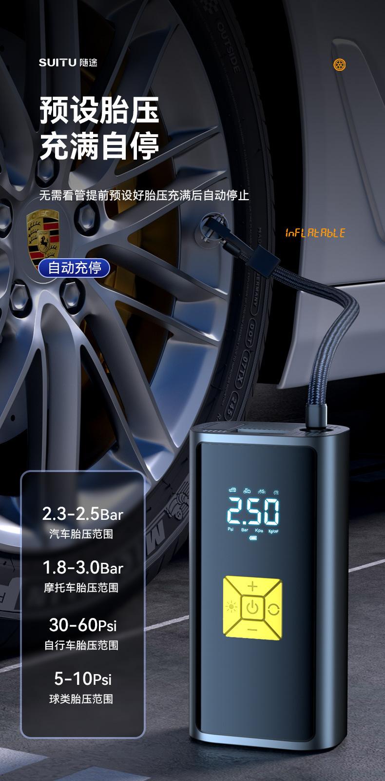 【[ST-9619C Inalámbrico] Host * 1, manguera de inflado * 1, boquilla de inflado4colocar,Cable de carga tipo C, manual*1, caja de color*1