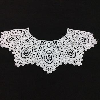 Fabricante de accesorios de ropa de cuello grande con encaje de chal de seda de leche con flores de cuello hueco soluble en agua de alta calidad, parte delantera y trasera |