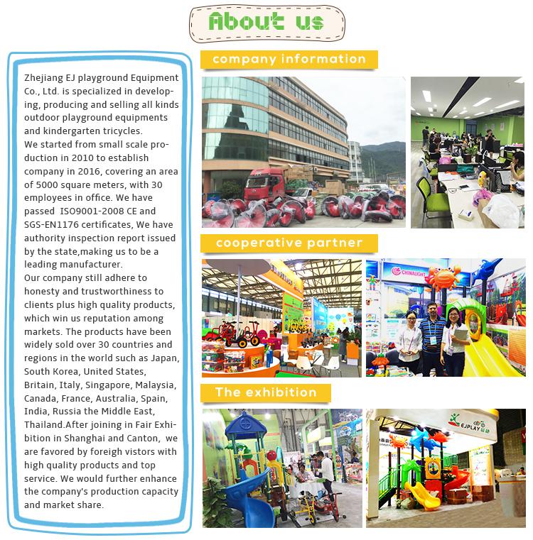 está localizada em Wenzhou, que é conhecida como a "cidade natal dos sapatos de couro", "cidade natal das válvulas" e "cidade natal dos materiais didáticos". A empresa está localizada na cidade de Qiaoxia, condado de Yongjia, cidade de Wenzhou. A empresa atua principalmente em equipamentos de diversão e brinquedos educativos. A empresa tem grande força e força técnica, controla rigorosamente a qualidade da produção e, ao mesmo tempo, adere à filosofia empresarial de "baseada na honestidade e confiável para o mundo". Os produtos que opera são absolutamente confiáveis e com preços razoáveis. Eles são bem recebidos pela maioria dos usuários e têm muitos parceiros de longo prazo. Nossa empresa possui uma moderna planta de produção e um showroom multifuncional e abrangente de produtos, que exibe no local diversas séries de produtos infantis no país e no exterior. O armazém supergrande oferece todos os tipos de produtos. Nos últimos anos, a empresa introduziu vários equipamentos de produção avançados e possui uma série de capacidades operacionais para vários projetos de moldes, produção, produção simplificada de produtos e testes. Fornecemos planejamento geral interno e externo e um conjunto completo de configurações de brinquedos educacionais para centros de compras governamentais, jardins de infância, escolas, áreas residenciais, parques, piscinas, resorts, locais de entretenimento, etc. campos desportivos, diversas salas funcionais e áreas de atividade, bem como desenvolvimento e construção de produtos. Nosso design requintado e produtos completos permitirão que você desfrute de serviços perfeitos de pré-venda e pós-venda. Somos especializados na produção de equipamentos de diversão ao ar livre, equipamentos de treinamento sensorial abrangente, equipamentos de ginástica, brinquedos grandes, médios e pequenos, escalada, castelos impertinentes, trampolins, produtos de fibra de vidro, etc.
