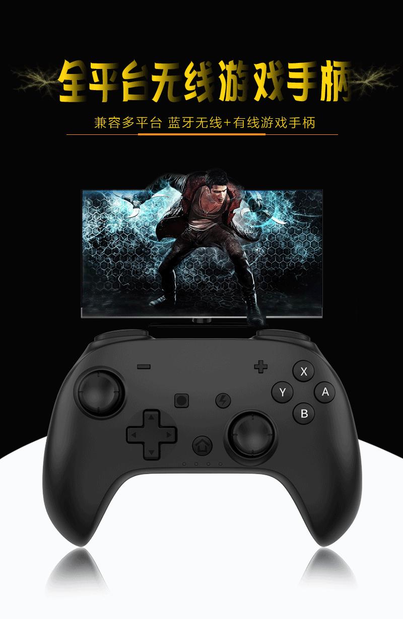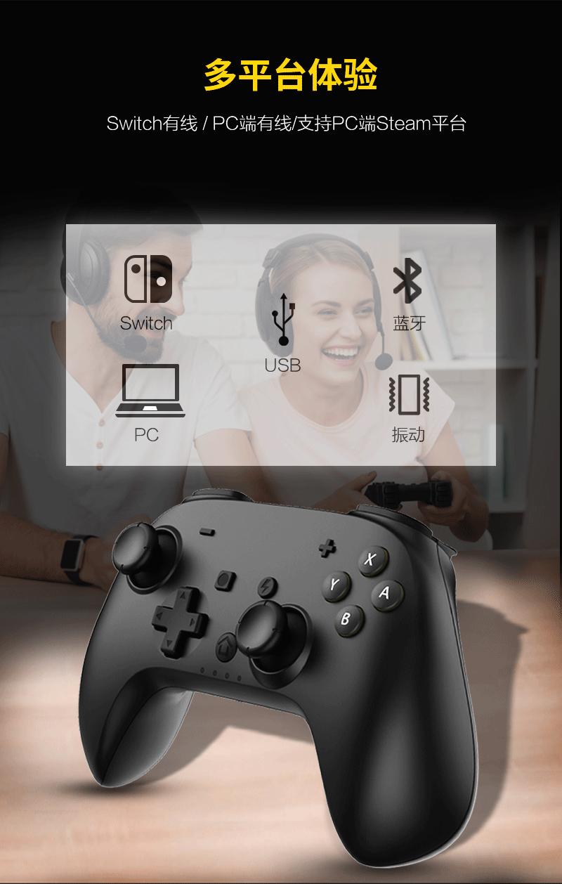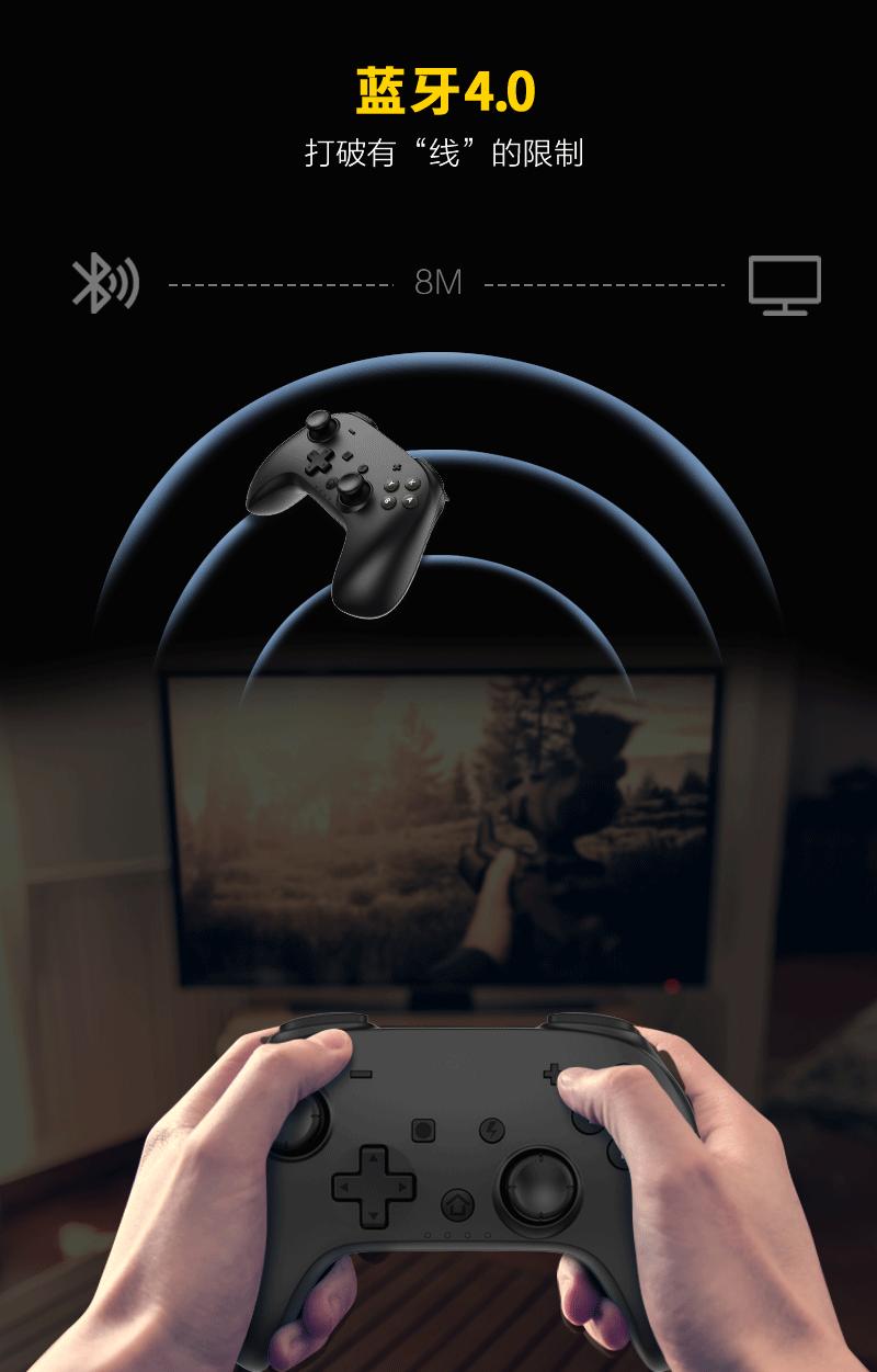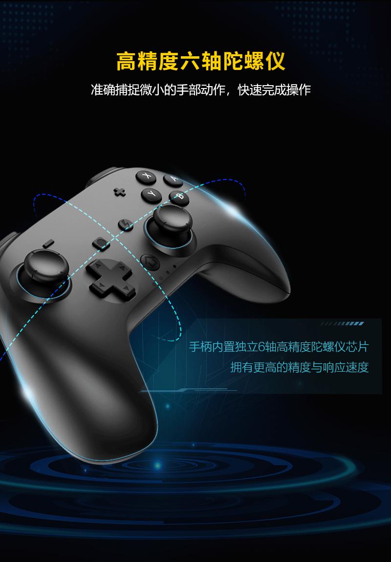 3. Conexão sem fio: conexão Bluetooth, usando o modo Switch, nome Bluetooth: Pro Controller, no modo Switch, a luz do modo de alça é atribuída pelo host