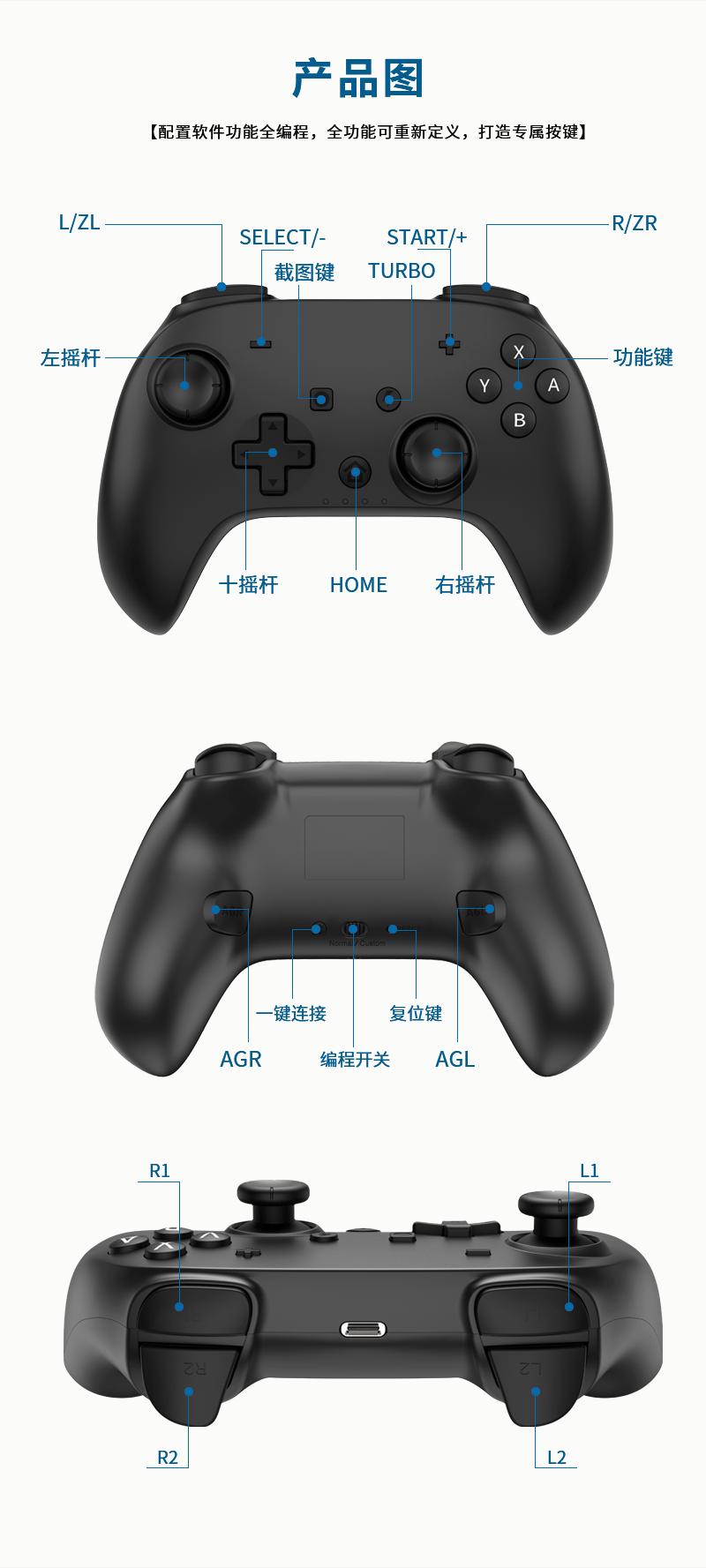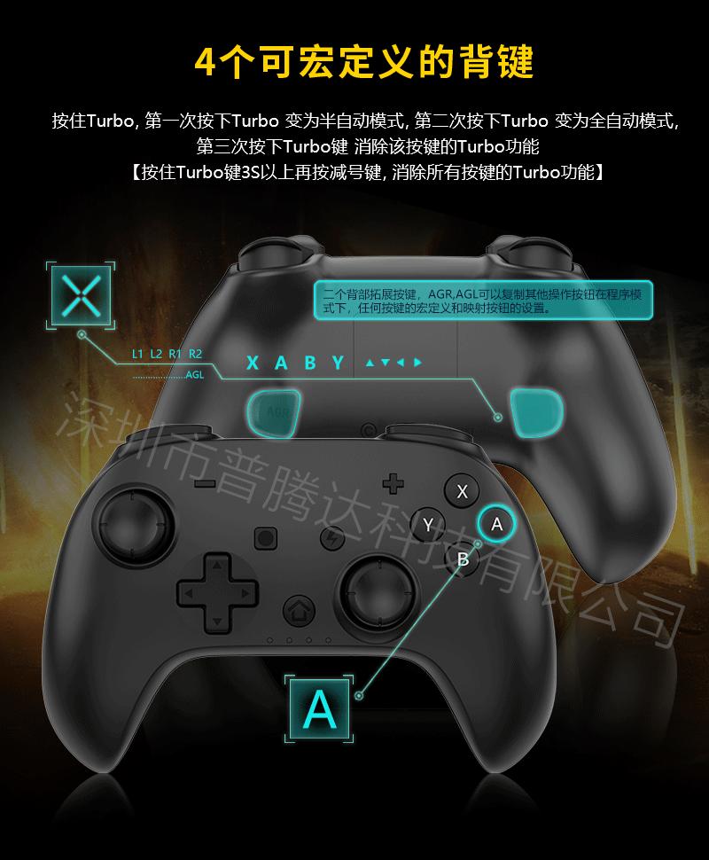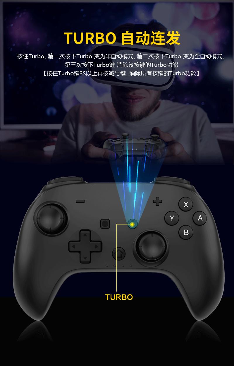 3. Conexão sem fio: conexão Bluetooth, usando o modo Switch, nome Bluetooth: Pro Controller, no modo Switch, a luz do modo de alça é atribuída pelo host