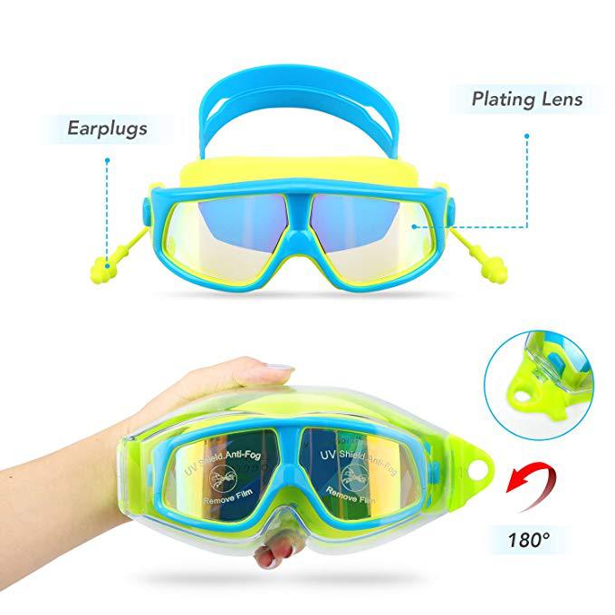 Gafas de natación Shenyu para niños con montura grande, impermeables y antivaho, con tapones para los oídos de una pieza y gafas 6900