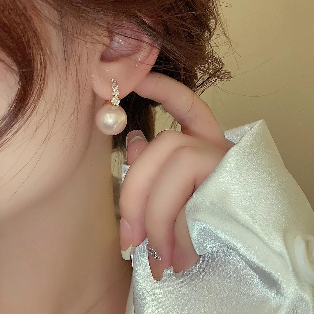 Pendientes de perlas de circonita de alta gama de moda, pendientes de lujo retro ligeros de nicho francés, nuevos pendientes 2023 al por mayor