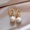 Pendientes geométricos de perlas retro francesas, pendientes de temperamento de moda exagerada, pendientes de lujo ligeros de nicho de alta gama, venta al por mayor para mujeres