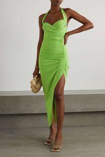 Vestido de verano plisado con abertura alta y cuello halter, sexy, de alta gama, de AliExpress, a la moda europea y americana.