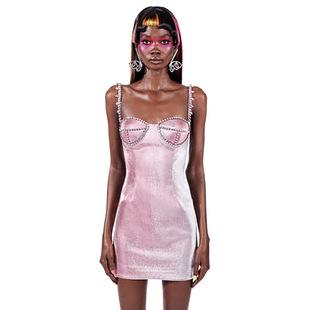 Comercio exterior, ropa de mujer de alta gama, sexy, sin espalda, con cuentas, falda, vestido, venta al por mayor, cuello en V, temperamento intelectual, falda de cadera para mujer