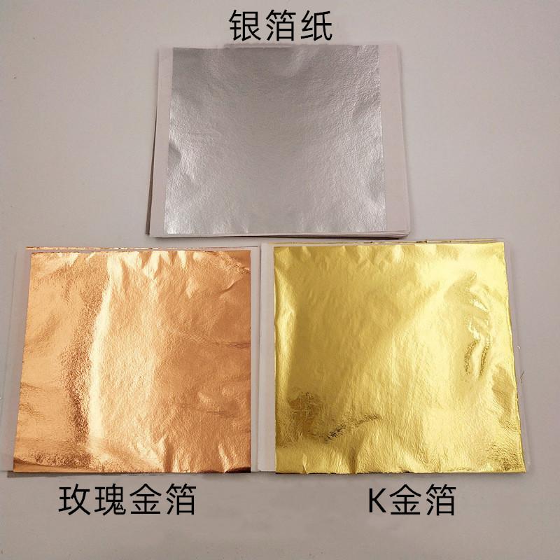 Grandes folhas de folha de ouro taiwanesa, folha de prata, folha de ouro rosa, adequadas para decoração de folha de ouro de móveis, folha de parede de fundo de teto de hotel epóxi, fornecimento transfronteiriço, pacote combinado de 3 cores de ouro e rosa prata, conveniente de usar, várias cores para escolher
