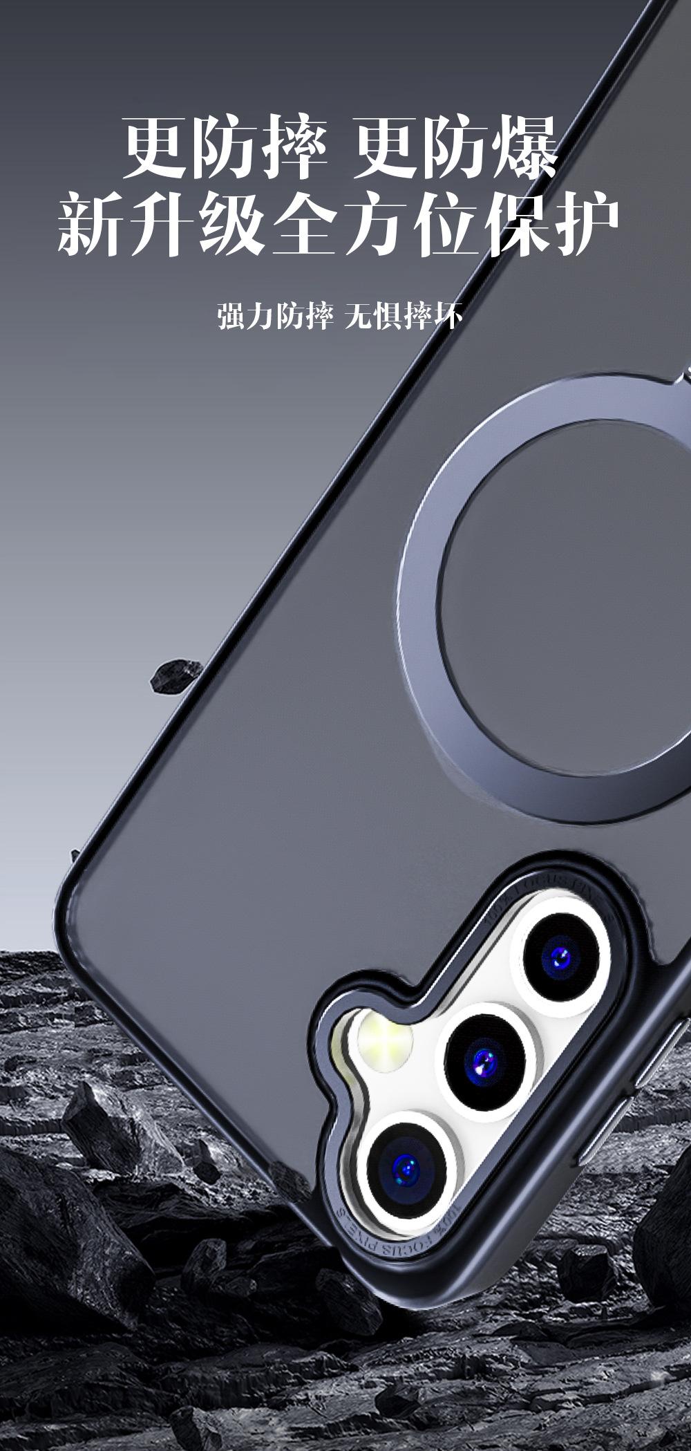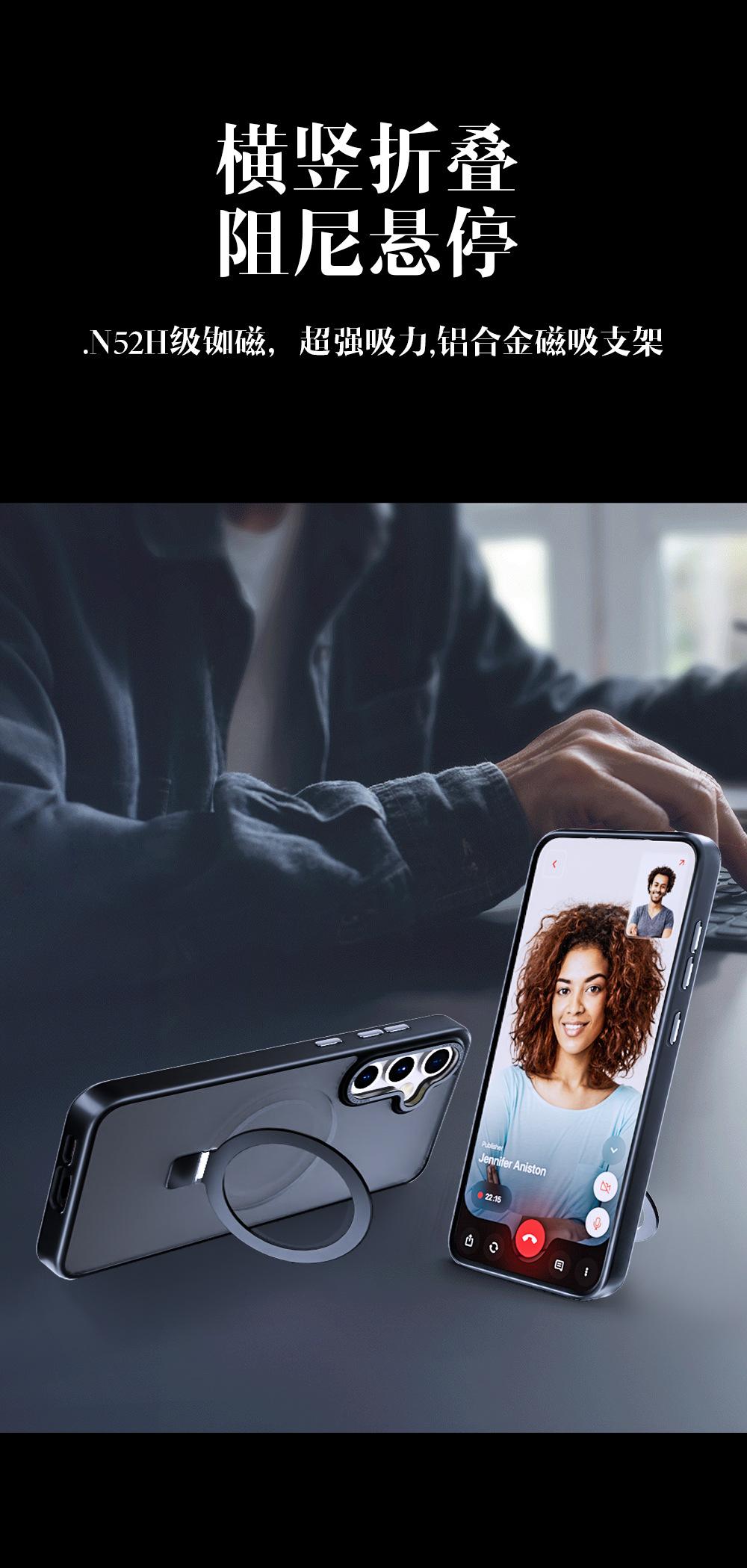 [Características del producto] TPU esmerilado de color sólido por todos lados, panel posterior de PC moldeado por inyección con efecto transparente esmerilado, tratamiento de pulverización avanzado, antiamarilleo, buen rendimiento en la sensación al tacto;N52HImán de neodimio, succión súper fuerte, soporte de función de succión magnética de aleación de aluminio; ligero y delgado, teniendo en cuenta tanto la sensación de la mano como el rendimiento anticaída