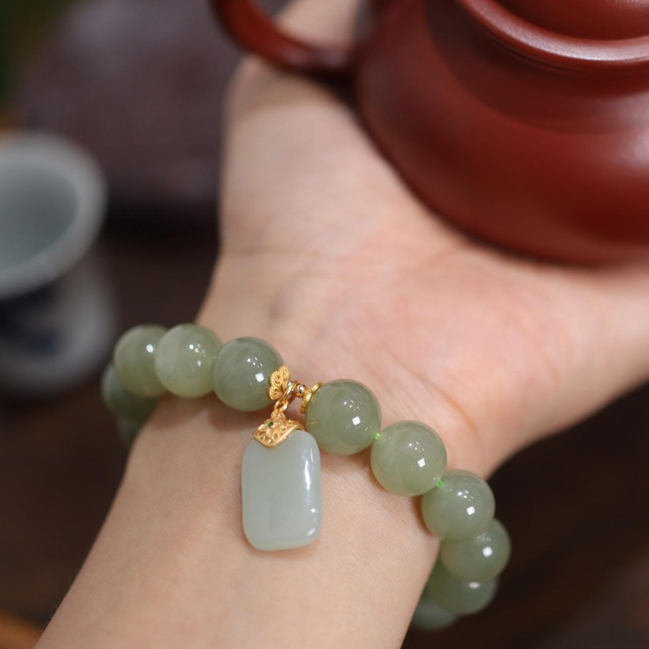 Jade Hetian 12MM, adecuado para circunferencia de muñeca 14-16CM |