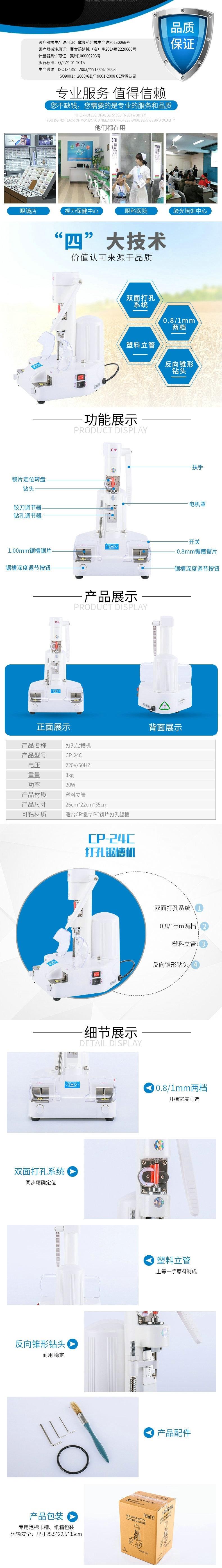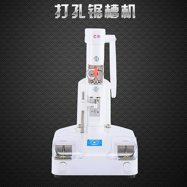 Esta máquina é um equipamento especial multifuncional para puncionar e serrar ranhuras para óculos sem armação.