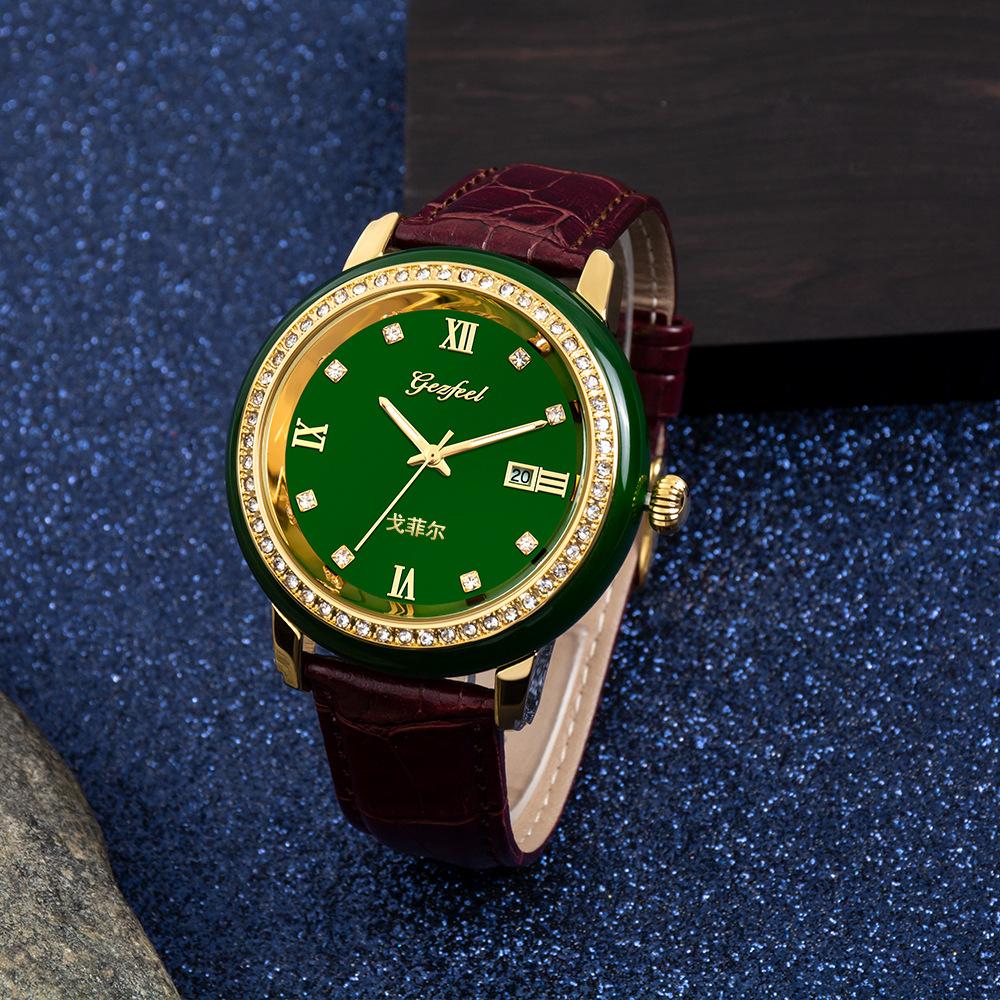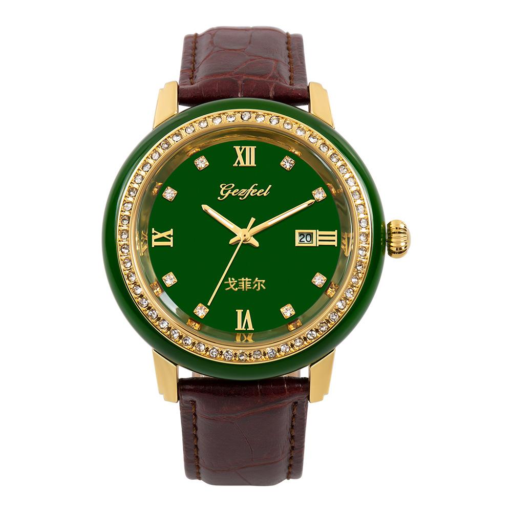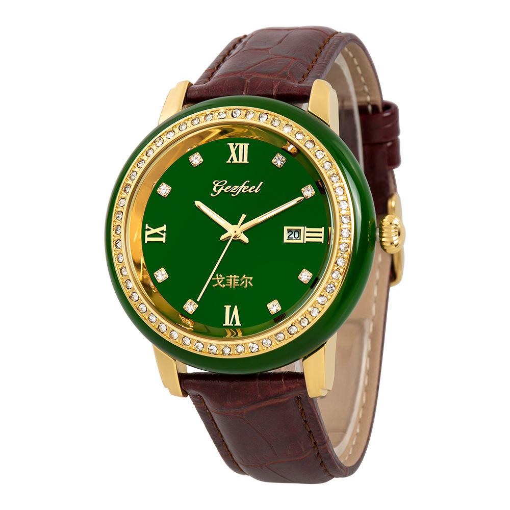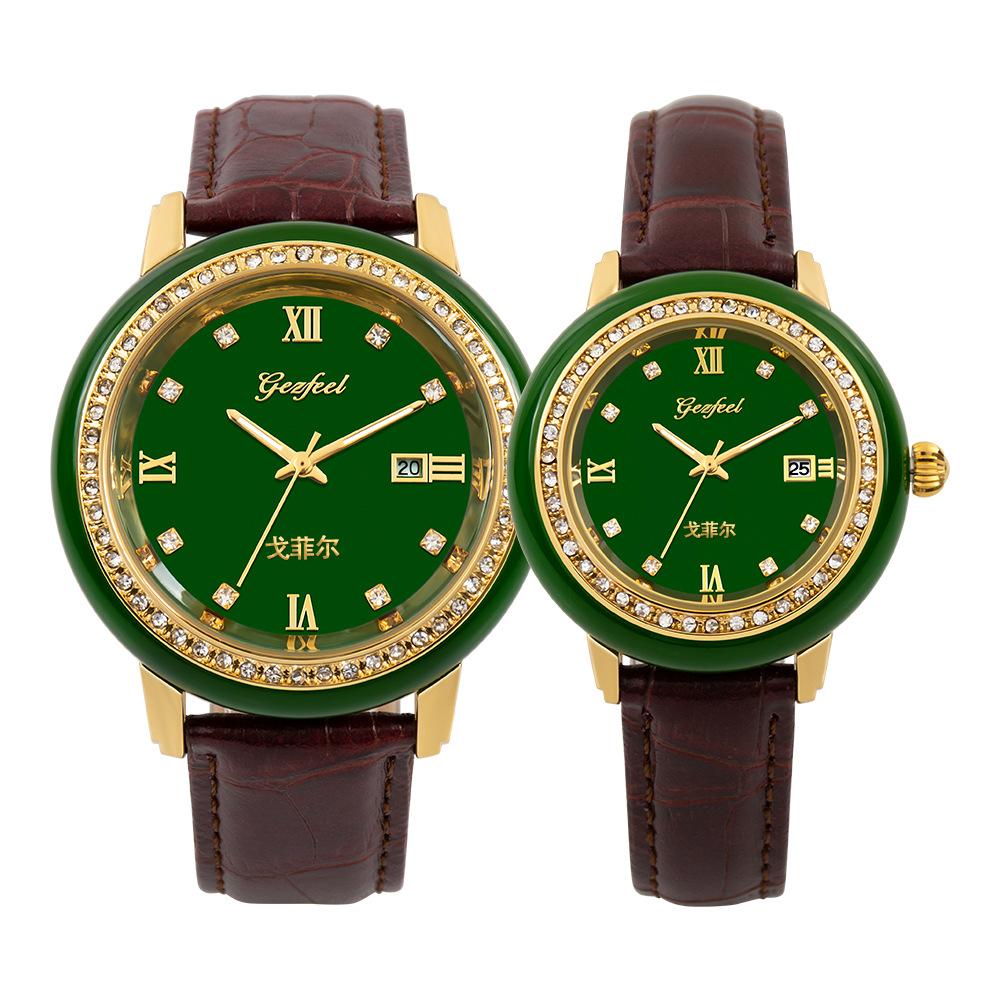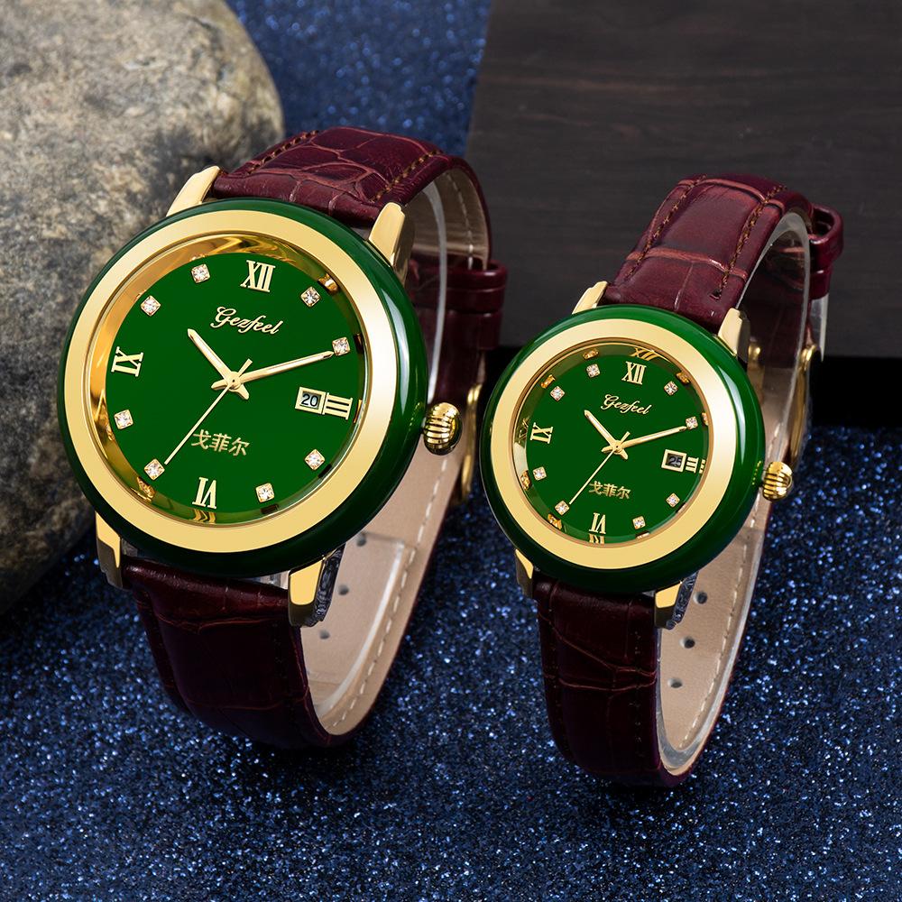 Nombre del producto: Relojes de jade personalizados al por mayor de fábrica para pareja, relojes de cuarzo con correa y calendario, relojes de jade mongol de venta caliente