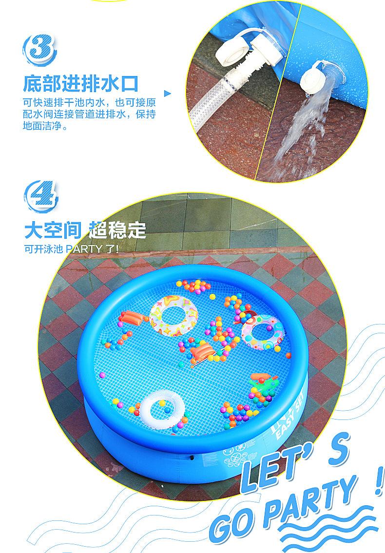 El círculo superior está hecho de un anillo inflable, y a medida que sube el nivel del agua, la piscina se elevará automáticamente