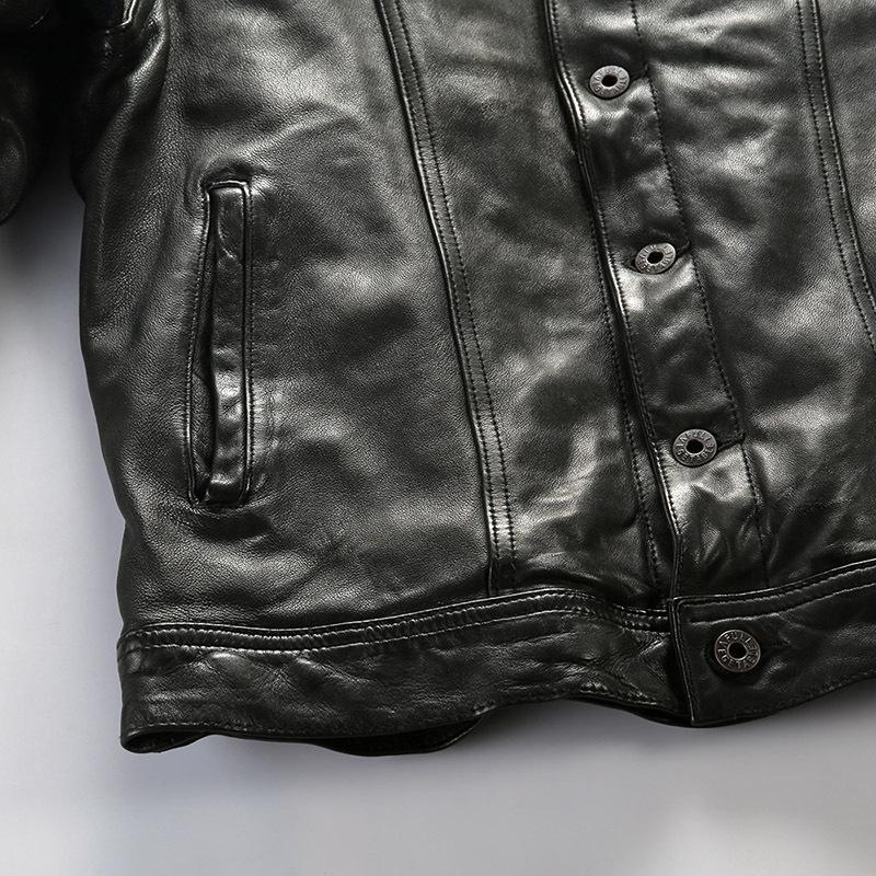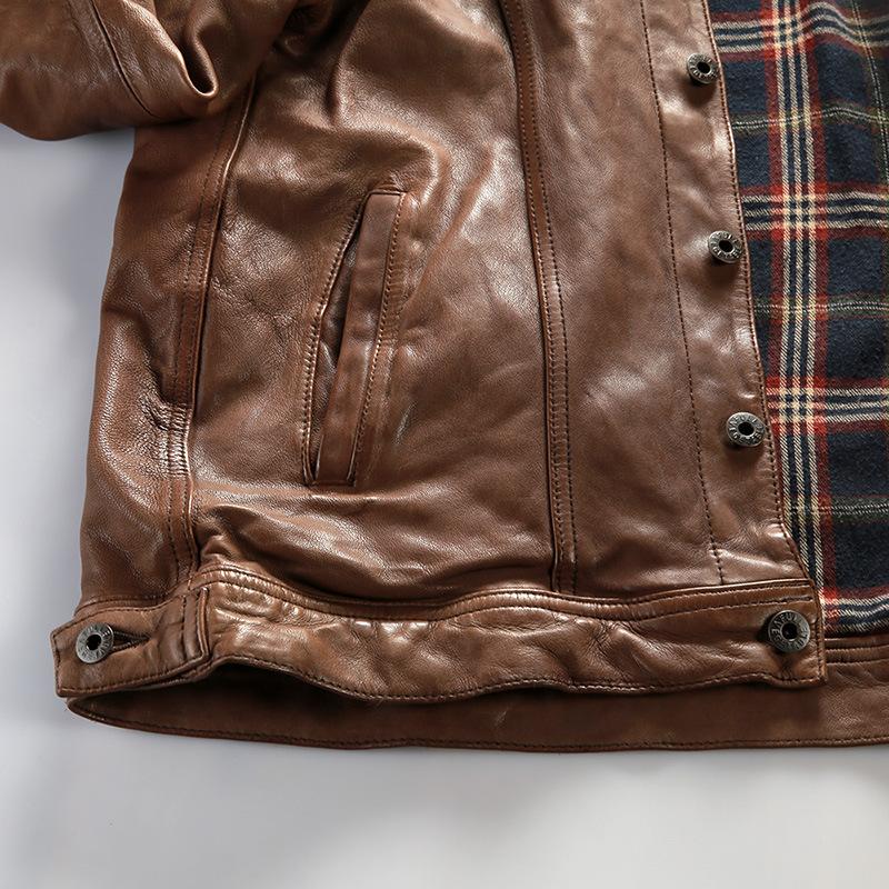Usamos piel de oveja curtida vegetalmente, que ha sido lavada intensamente y tiene un tacto arrugado. El cuero tiene 1.2 mm de grosor y se siente suave y carnoso.