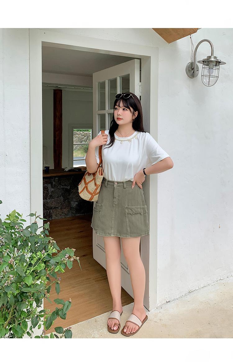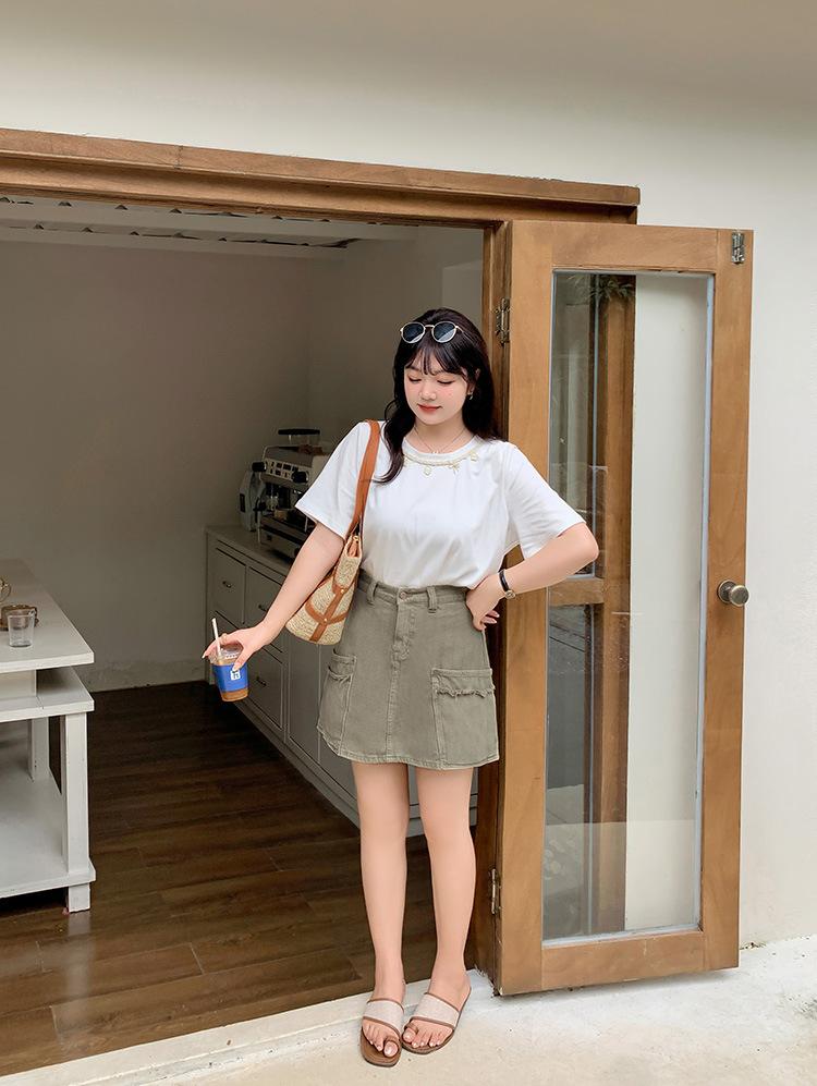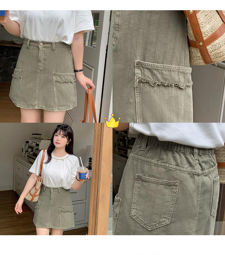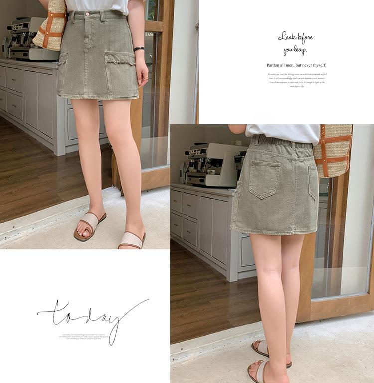 Esta falda de mezclilla con bolsillos de borde crudo es realmente hermosa