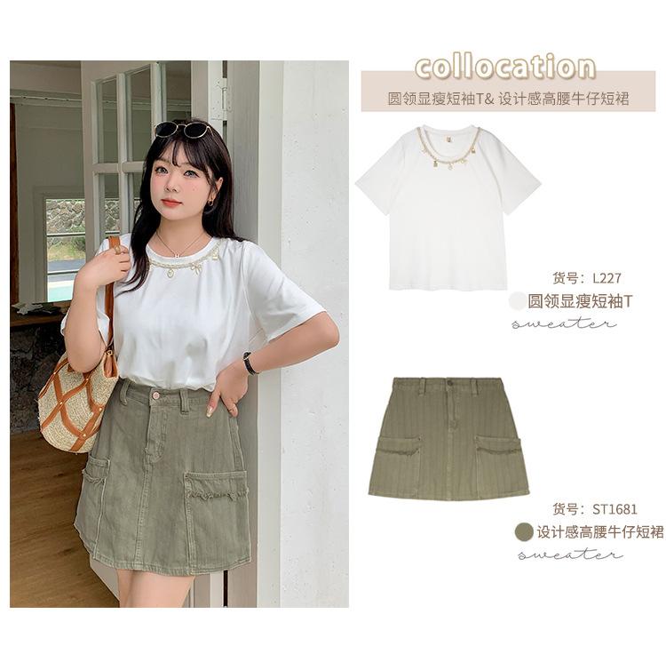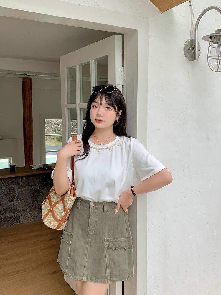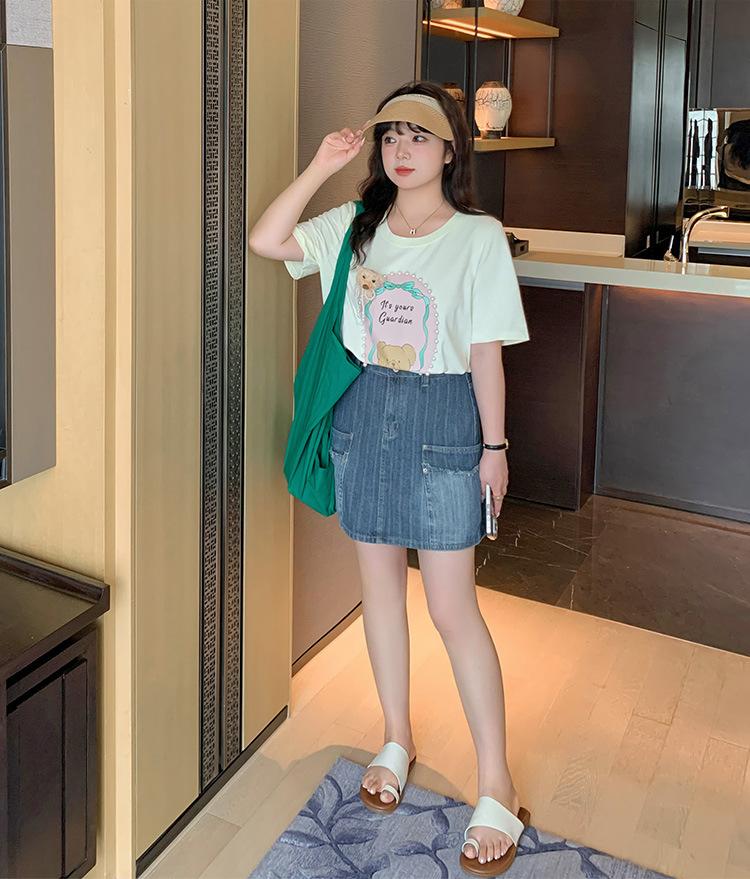 La falda corta apenas puede cubrir la parte más gruesa del muslo