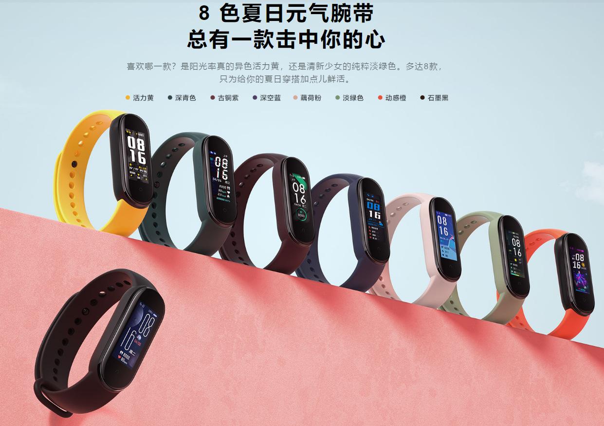 Correa de repuesto impermeable de color sólido colorida compatible con Xiaomi Mi Band 5.ª generación/5.ª generación NFC.