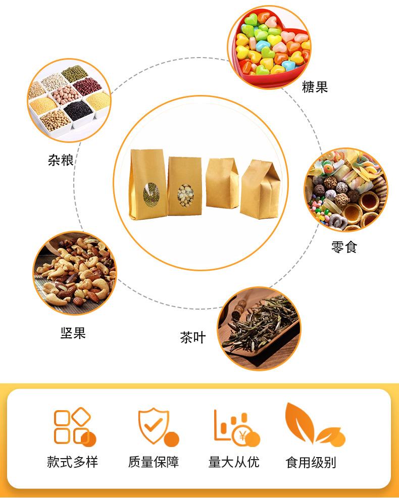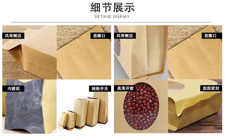 Bolsa sellada de ocho lados de papel kraft para ventana de alta definición Qitai, bolsa de embalaje sellada para frutos secos y frutos secos tostados, bolsa ziplock para té en el acto |