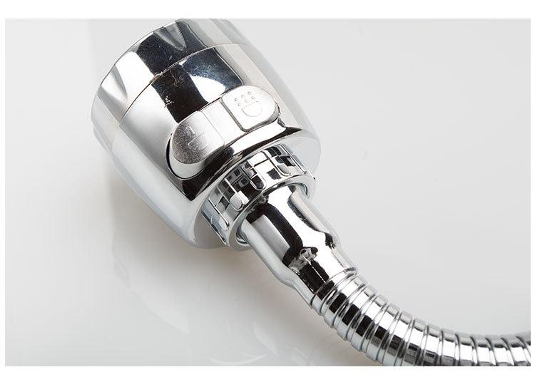 O cabeçote antirrespingo é feito de plástico ABS galvanizado e tem duas funções: chuveiro e espuma.