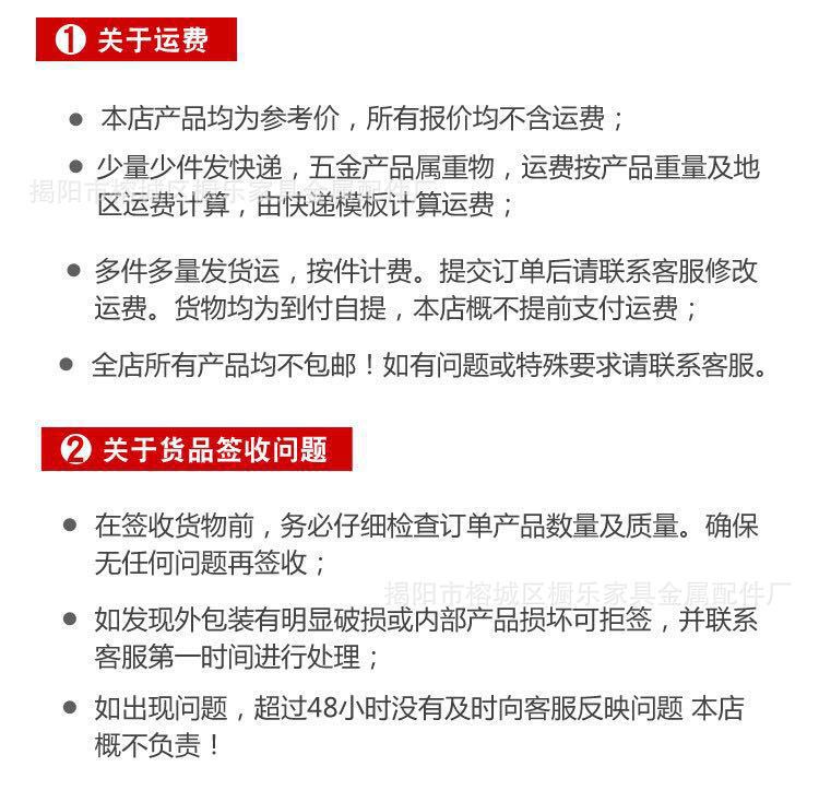 Produtos de hardware são mercadorias pesadas e pequenas quantidades serão enviadas por expresso ou entrega expressa. O frete será enviado para grandes quantidades, e o frete será coletado na coleta.
