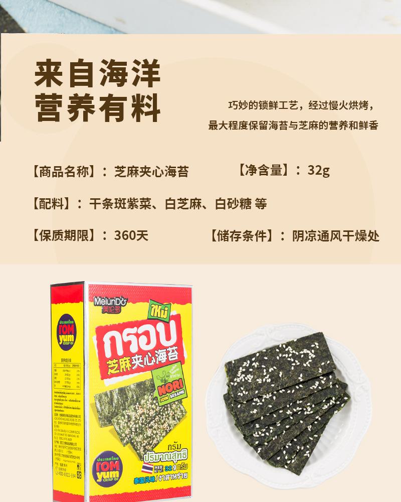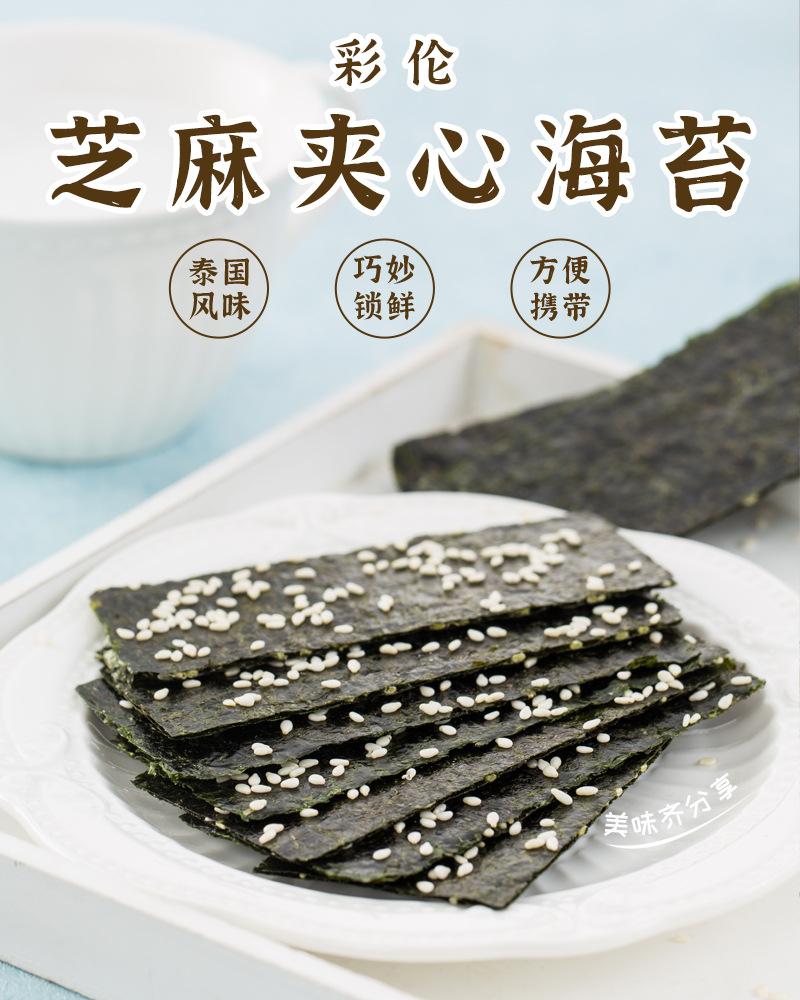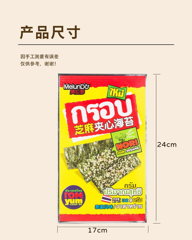 Nombre del producto: Cailun Thai sándwich de sésamo alga crujiente 40g snacks listos para comer para niños, mujeres embarazadas, snacks de alga tostada en bolsa 40g/bolsa, 40 bolsas por caja
