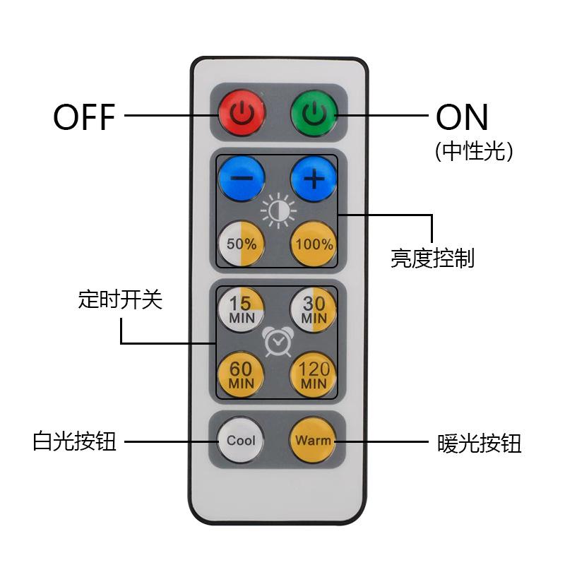 Modo: Carcaça preta, pressão manual, somente luz neutra (carcaça branca, pressão manual, tem 3 níveis de luz!!!), controle remoto ON acende luz neutra, WARM (luz quente), WHITE (luz branca), temporizador, escurecimento de 10 níveis