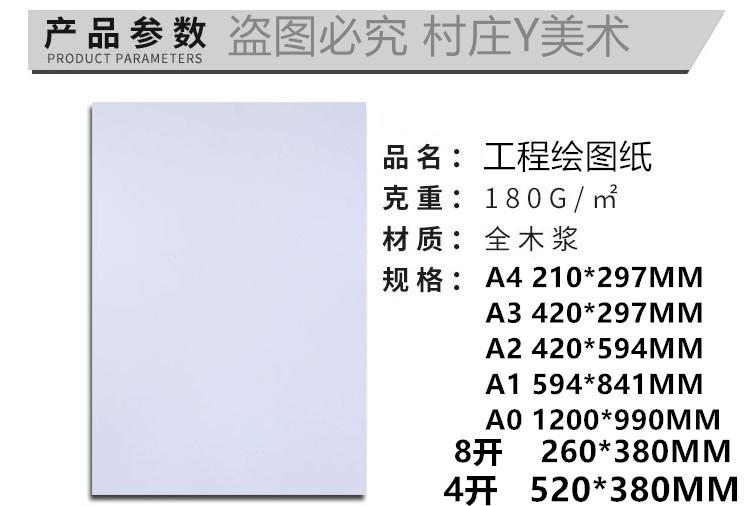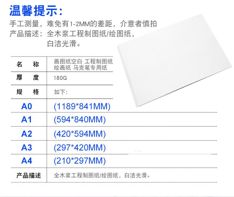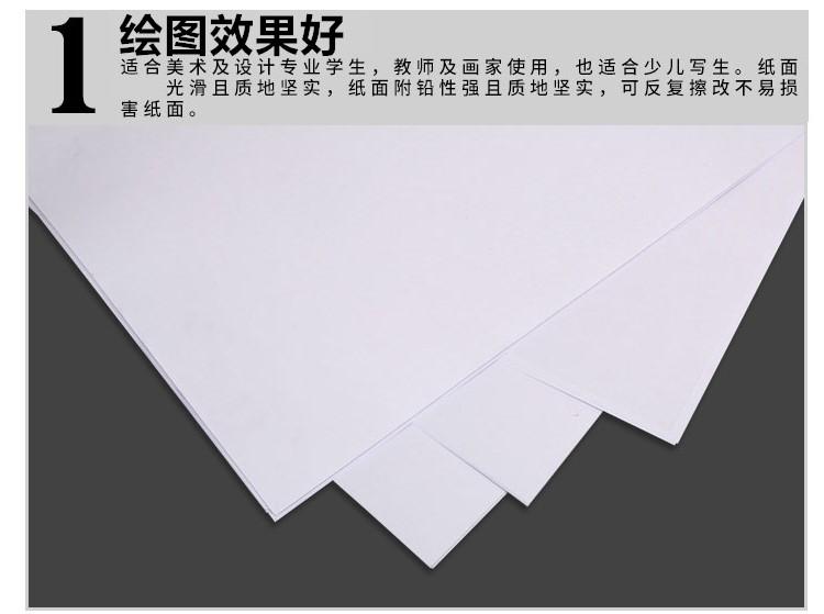Descripción del producto: Papel de dibujo/trazado de ingeniería de alta calidad hecho de pulpa de madera, blanco, limpio y suave, grueso y rígido, con excelente absorción de tinta, ideal para dibujar.