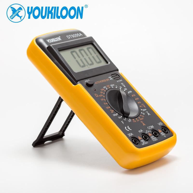 O multímetro digital DT9205A tem um design inovador e está mais de acordo com os padrões internacionais de segurança. Ele adicionou uma função de retenção (hold), uma função de desligamento automático, um buzzer alto e é equipado com pontas de prova que atendem aos padrões internacionais.