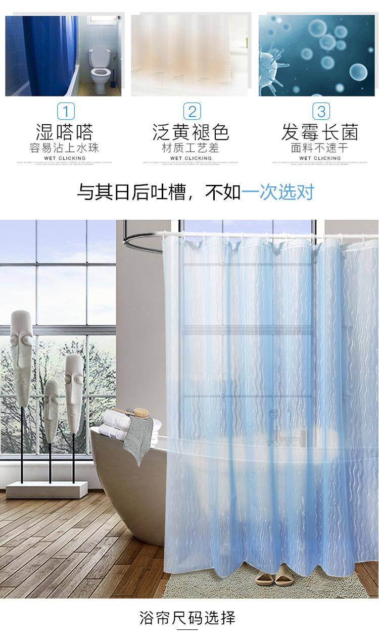| Nombre del producto: cortina de ducha | Material: PEVA/EVA | Marca: New Tree | Embalaje: bolsa de PVC + tarjeta de color + anillo para colgar |